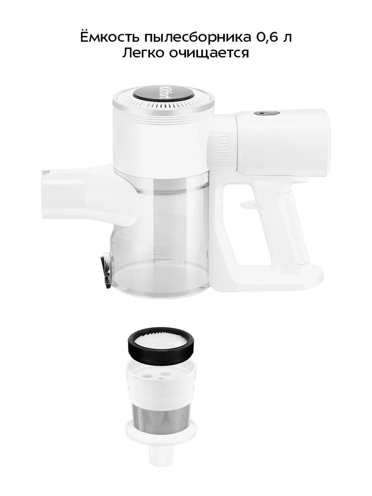 Беспроводной вертикальный пылесос Kitfort КТ-5569 очень удобен при локальной уборке. Он компактен, всегда под рукой и готов к работе. При отсоединении удлинительной трубки и установке насадки он превращается в ручной пылесос. Его конструкция позволяет легко проникать в самые труднодоступные уголки квартиры. При этом не нужно передвигать громоздкий корпус проводного пылесоса и управляться с непослушным шлангом. Благодаря работе от аккумулятора не нужно включать вилку в розетку, провода не мешают под ногами. Поэтому пылесос имеет неограниченный радиус действия: от любого уголка квартиры до машины или беседки в саду. Пылесос оснащен маневренной напольной турбощеткой, которая вращается в двух плоскостях.
