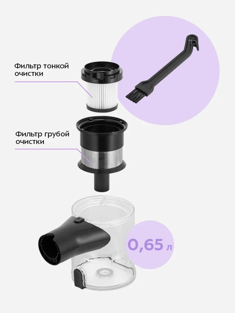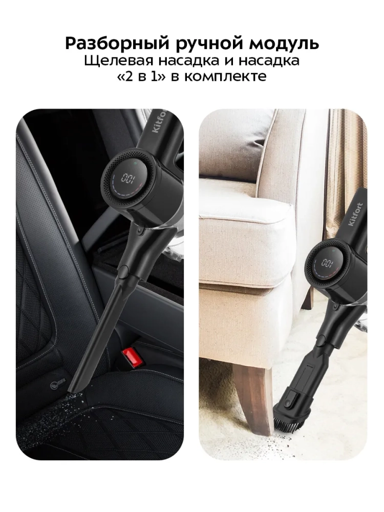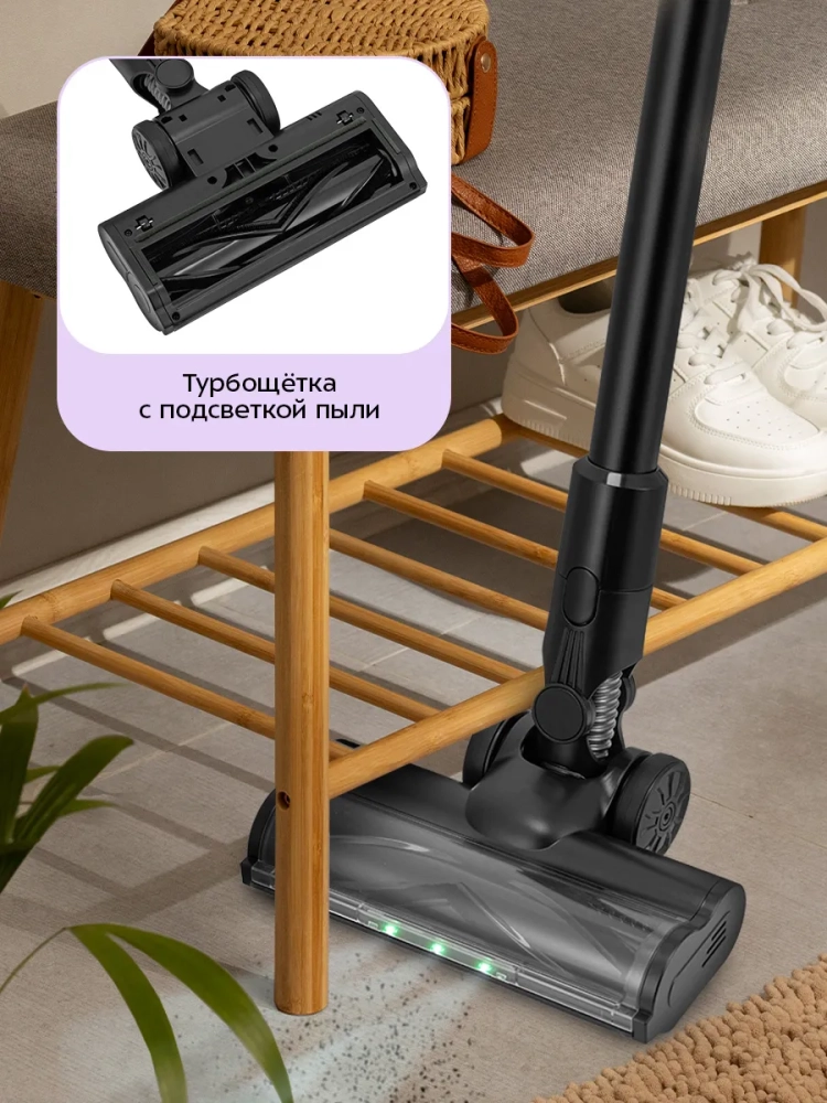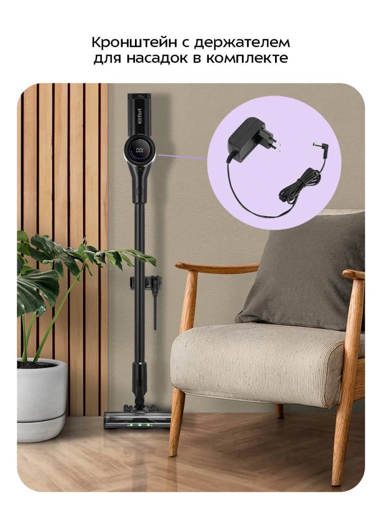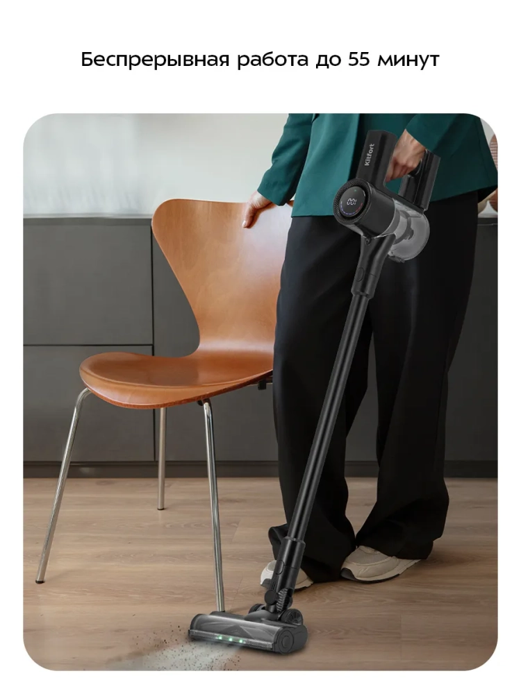 Вертикальный беспроводной ручной пылесос Kitfort КТ-5550 — это современное решение для эффективной уборки вашего дома. Этот мощный бытовой прибор сочетает в себе удобство и функциональность, обеспечивая высокую производительность благодаря аккумуляторному питанию. Пылесос оснащен маневренной напольной турбощеткой, которая легко справляется с уборкой под диваном и в других труднодоступных местах. Гибкая удлинительная трубка позволяет проникать даже в самые узкие уголки. Этот вертикальный пылесос может быть использован как ручной, что делает его универсальным помощником для дома и автомобиля. Благодаря отсутствию проводов, вы можете свободно перемещаться по всей квартире или даже использовать его на улице без ограничений радиуса действия. Пылесос Kitfort КТ-5550 имеет контейнер объемом 0,65 литра для сбора пыли, что упрощает процесс очистки устройства после использования. Время работы от аккумулятора составляет до 55 минут на низкой мощности, что достаточно для полноценной уборки помещения. Мощность устройства достигает 350 Вт благодаря бесщеточному двигателю постоянного тока (BLDC), который обеспечивает тихую работу с уровнем шума не более 78 дБ. Это делает его идеальным выбором для тех, кто ценит тишину во время уборки. Компактные размеры (240 х 210 x 1150 мм) позволяют хранить этот беспроводный пылесос практически в любом месте вашего дома без ущерба пространству.