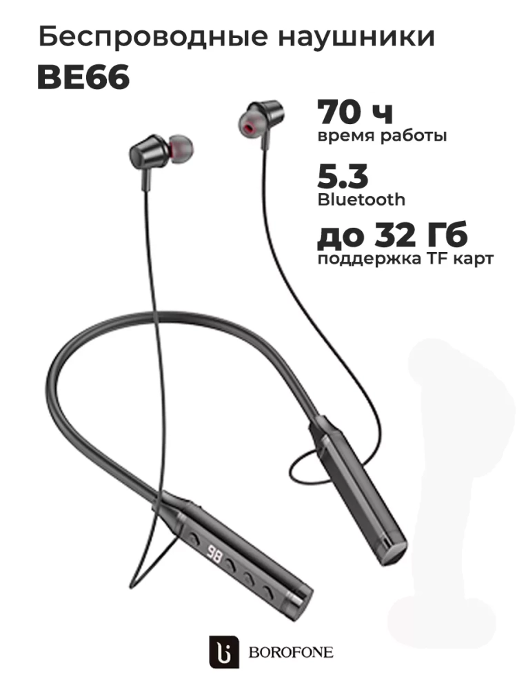 BOROFONE BE66 - это Bluetooth-наушники, которые отлично подходят для занятий любыми видами спорта, включая активные, а так же для прогулок.