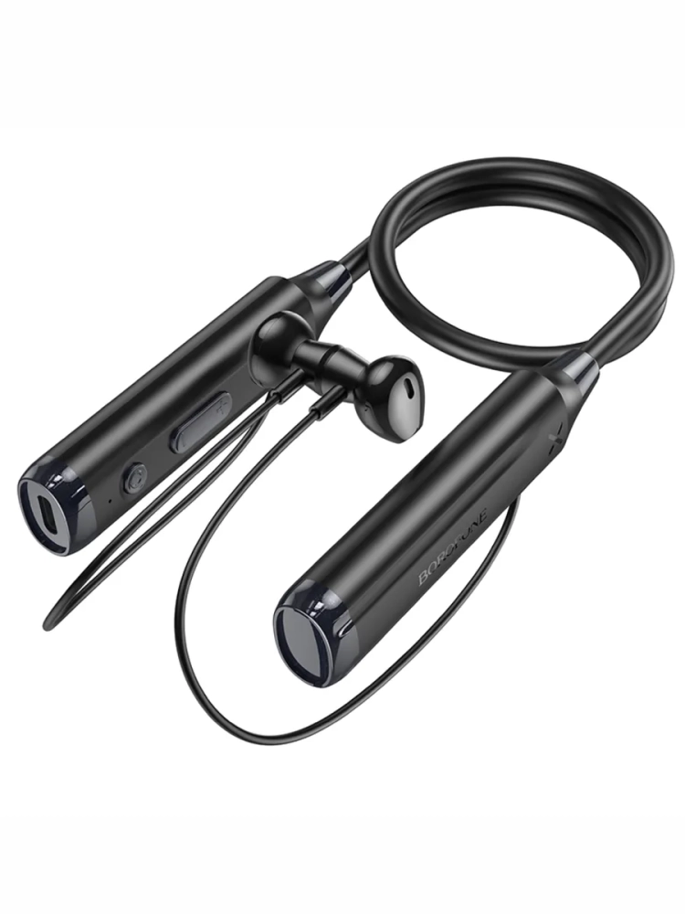- Bluetooth-гарнитура Borofone BE64 — идеальный выбор для активных людей, ценящих качественный звук и комфорт во время тренировок и повседневного использования.