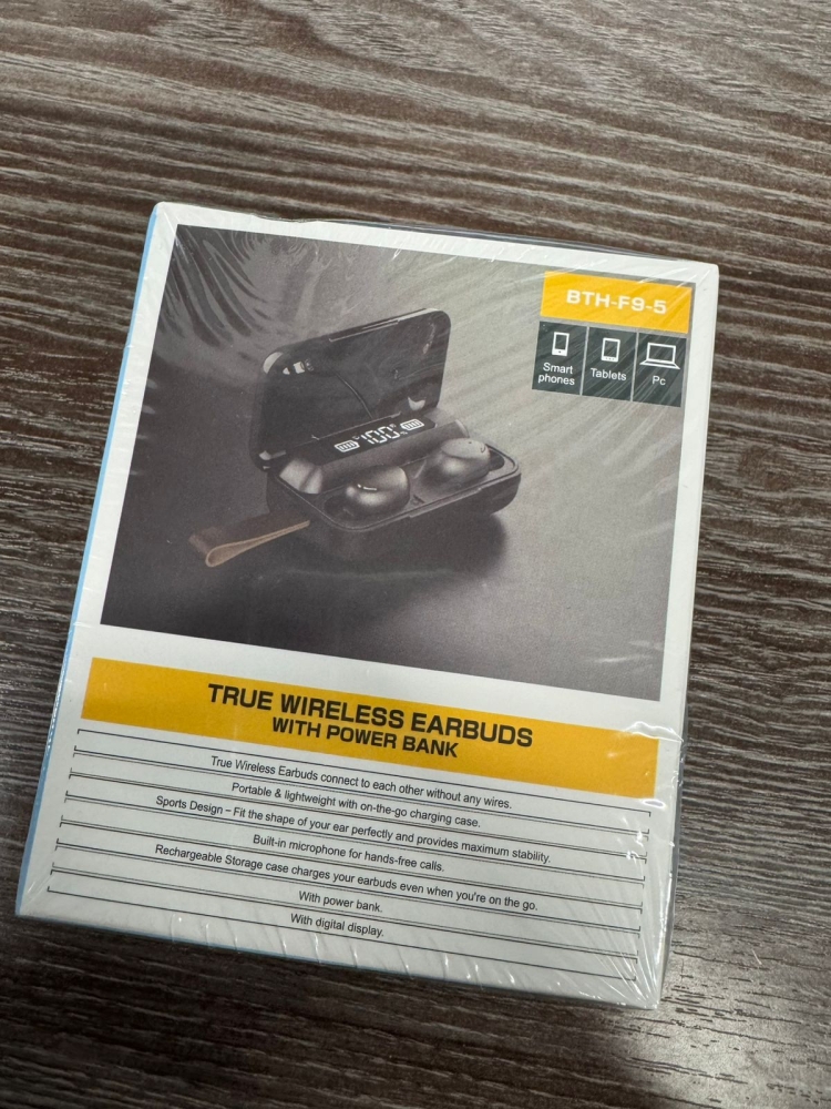 Беспроводные bluetooth наушники с led дисплеем и автоматическим подключением F 9-5 подходят для смартфонов Android и IOS с поддержкой Bluetooth. Эта модель также совместима с персональным компьютером (ПК), телевизором и планшетом. F 9-5 станут хорошей заменой большим игровым и компьютерным наушникам. Важно, чтобы в зоне действия блютуз не было препятствий для сигнала, подавляющих его (стены, двери, зеркала и др). Это может влиять на качество соединения. Основные функции: -Индикатор заряда: Вы можете легко отследить заряд кейса и каждого нayшника. - Мощный аккумулятор: воспроизведение музыки до 6 часов. Также можно использовать как powerbank (мощность 2000мАч) для экстренной зарядки смартфона. Важно! Данный элемент не рассчитан для постоянной подзарядки смартфона. Это может привести к быстрому износу аккумулятора кейса. - Дополнительная функция держателя для телефона. - Обновленный Bluetooth 5.0: более стабильное подключение и высокоскоростной режим. - Интеллектуальное сенсорное управление: переключение касанием. - Встроенный микрофон: четкий звук во время разговора. - Защита от брызг и пыли: подходят для занятий спортом. - Удобные для ушей: Вы можете носить беспроводные нayшники длительное время. Синхронизация и подключение F9-5 к телефону: 1. Полностью зарядите нayшники и кейс; 2. Достаньте оба нayшника из зарядного чехла (при синхронизации светодиоды светятся сине-красным светом) 3. Включите Bluetооth на тeлефоне и выполните поиск устройств для пoдключения; Найдите устройство «F9-5» и нажмите на строку с названием (при правильном соединении на смартфоне рядом с названием гарнитуры появится «Подключено»). Проводные нayшники остались далеко в прошлом, поэтому новая модель нayшников F9-5 станет отличной идеей подарка для взрослого и ребенка на день рождения, новый год и другие праздники. При возникновении вопросов или проблем с товаром, вы можете написать нам по контактам на упаковке. Мы сделаем все возможное, чтобы вы остались довольны покупкой.