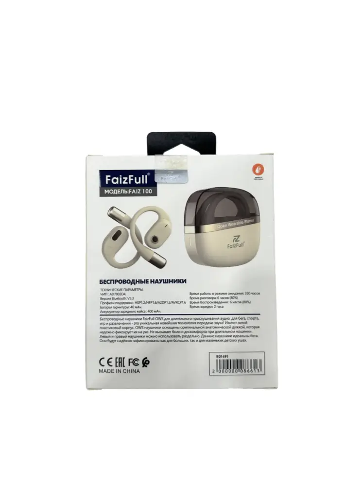 Беспроводные наушники FaizFull OWS для длительного прослушивания музыки, для бега, спорта, игр и развлечений - это уникальная новейшая технология передачи звука! Имеют литой пластиковый корпус. OWS наушники оснащены оригинальной анатомической дужкой, которая надежно фиксирует их на ухе. Не вызывает боли и дискомфорта при длительном ношении. Левый и правый наушники можно использовать раздельно. Данные наушники идеальны для бега. Они будут надежно зафиксированы как на больших, так и на маленьких детских ушах.