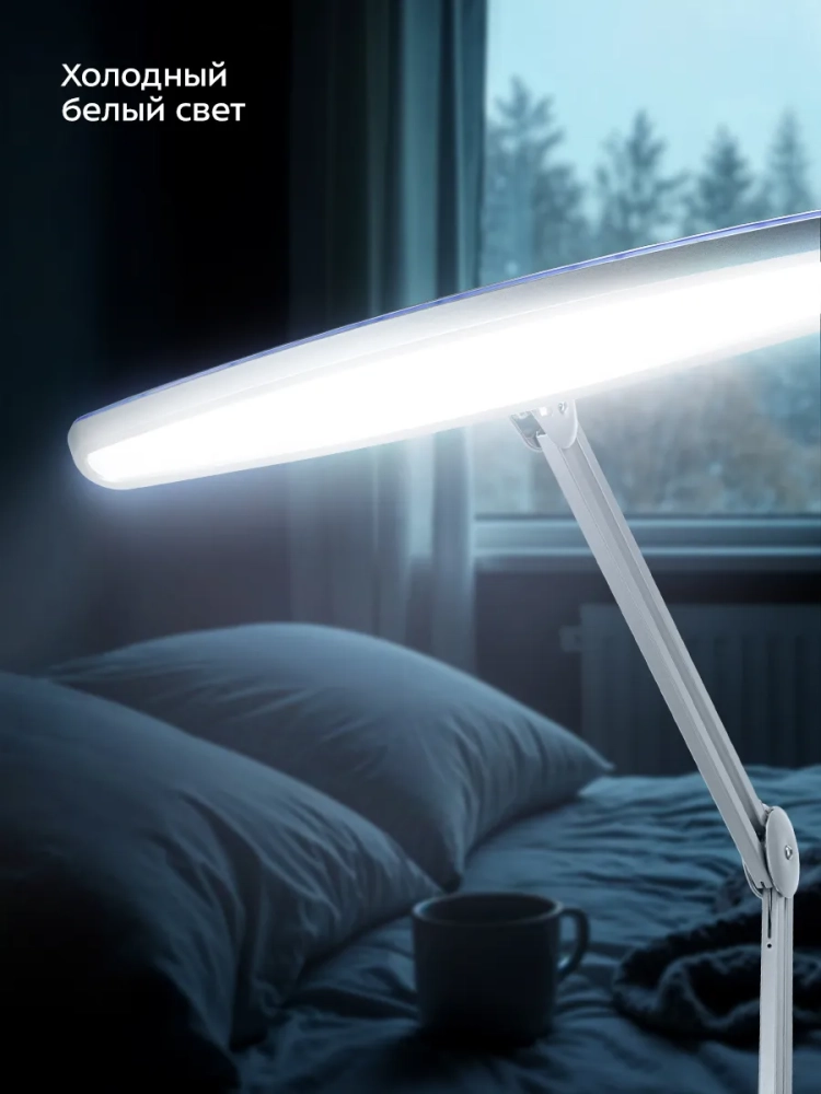 КТ-3724 работает в режиме холодного белого света (6500 К). Согласно ГОСТ Р 55710-2013, цветовая температура источника света на рабочем месте должна быть в диапазоне 4000–6500 К. Для поддержания комфорта глаз при работе в любое время вы можете воспользоваться дополнительным источником света, например, светодиодной настольной ламой.