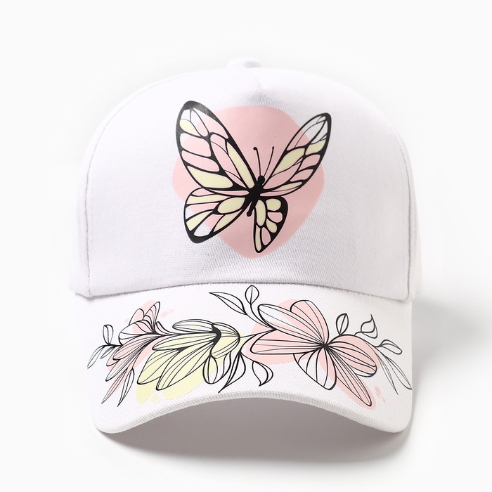 Бейсболка детская "Бабочки", цвет белый, размер 54