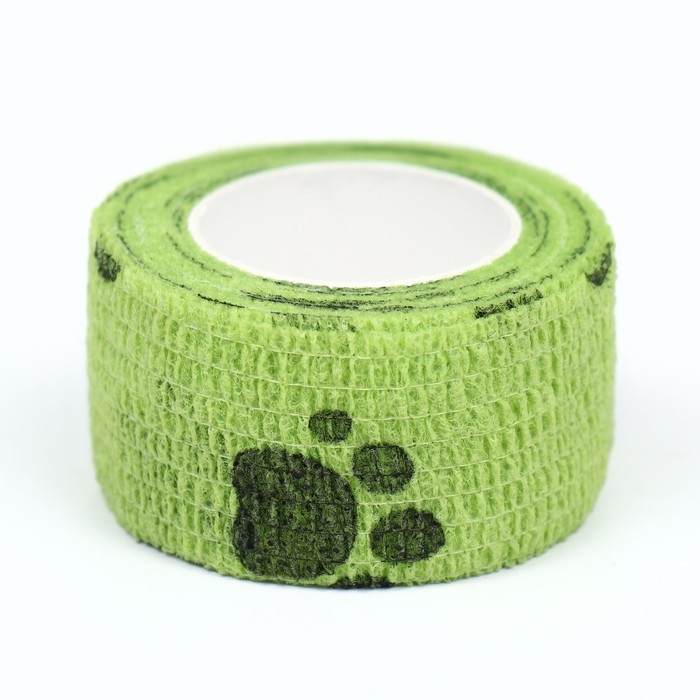 Бинт самофиксирующийся "Лапки", 2,5 см, макс. растяжимость 4,5 м, салатовый