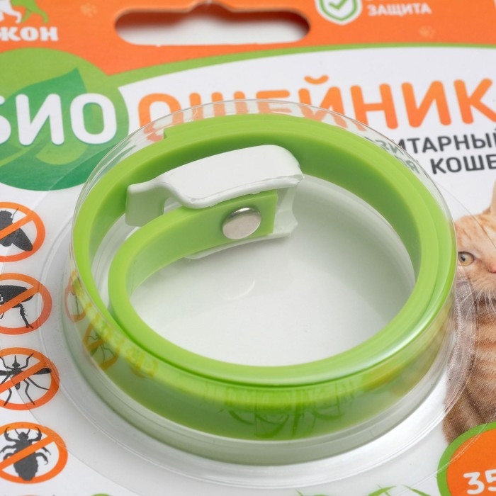 Биоошейник от паразитов "ПИЖОН" для кошек от блох и клещей, зеленый, 35 см