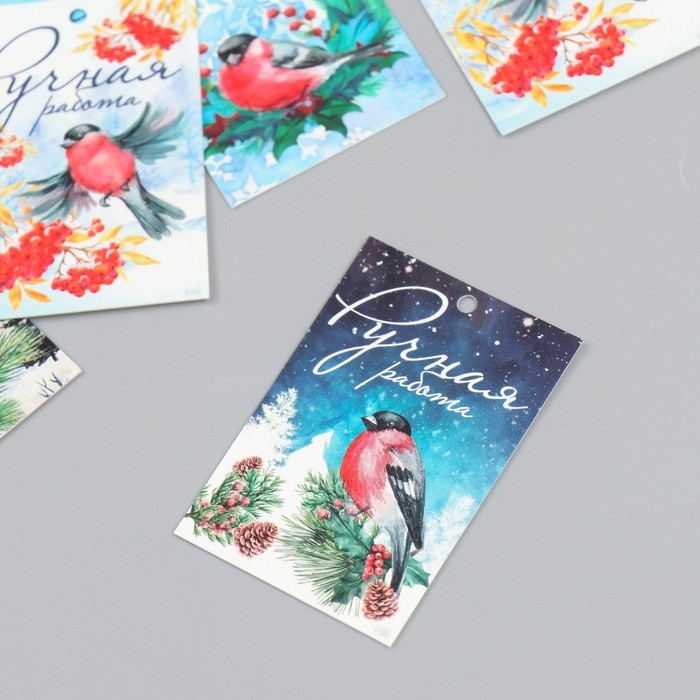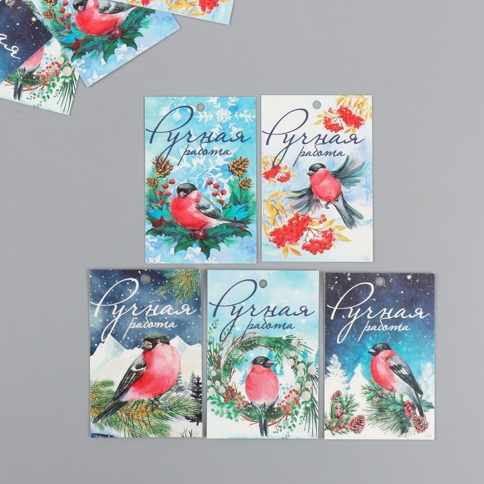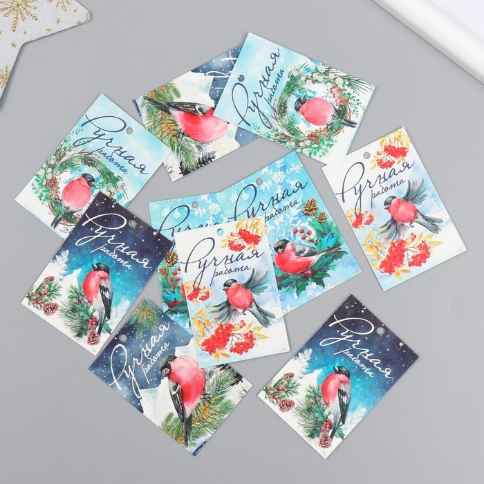 Бирка картон "НГ Снегирь" набор 10 шт (5 видов) 4х6 см