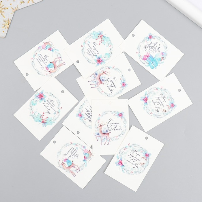 Бирка картон "Новогодние веточки" набор 10 шт (5 видов) 4х6 см