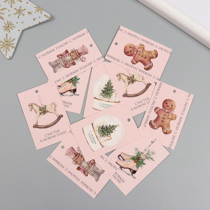 Бирка картон "Счастья в Новом году" набор 10 шт (5 видов) 4х6 см