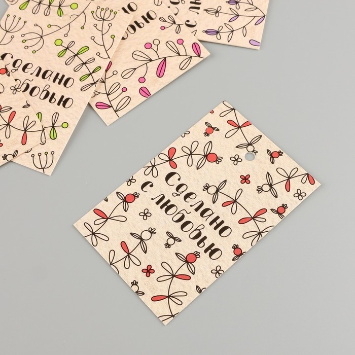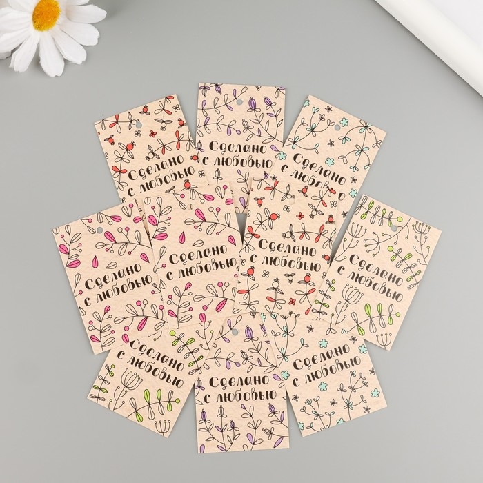 Бирка картон "Сделано с любовью",бумажная, набор 10 шт (5 видов) 4х6 см