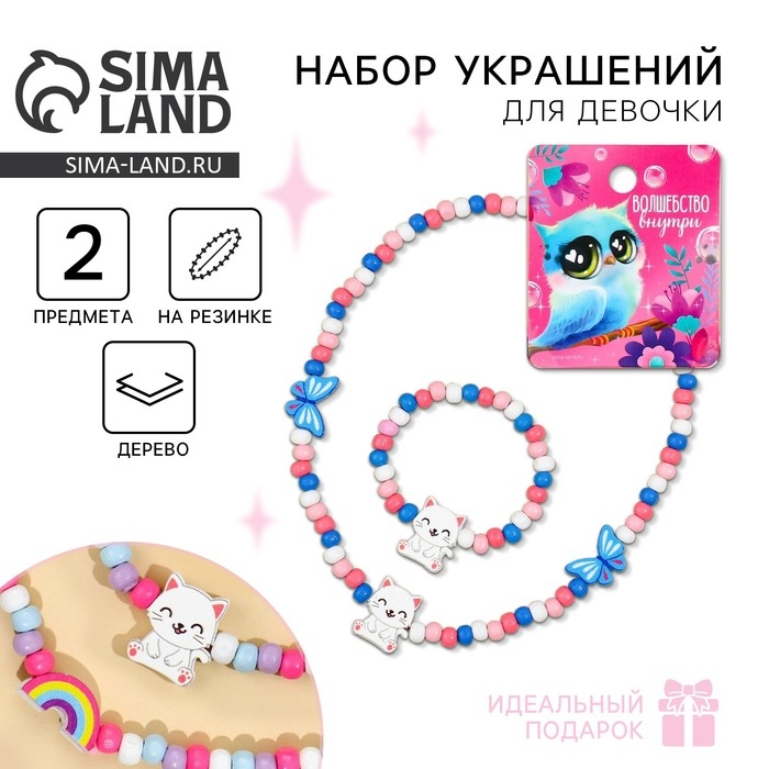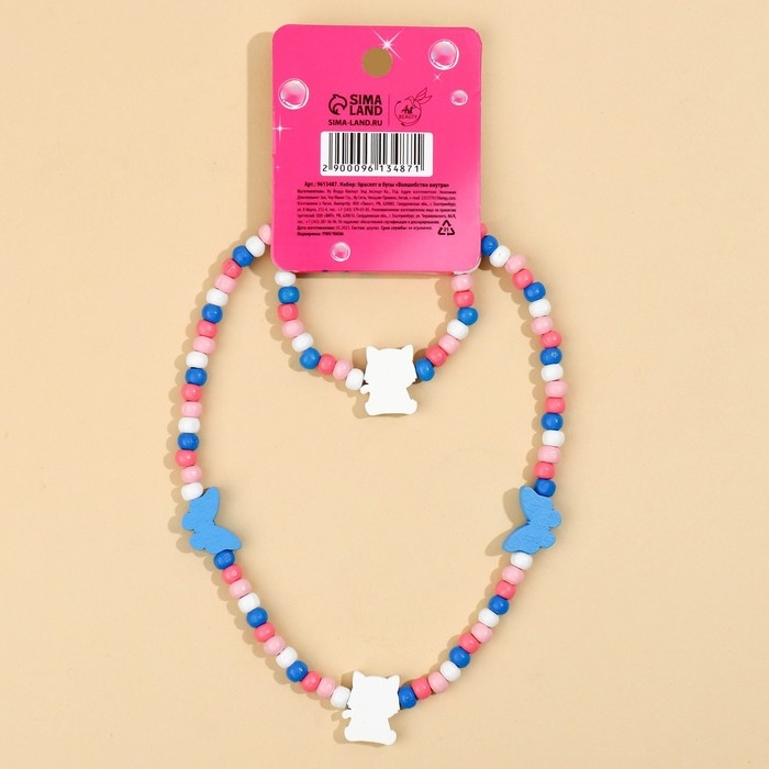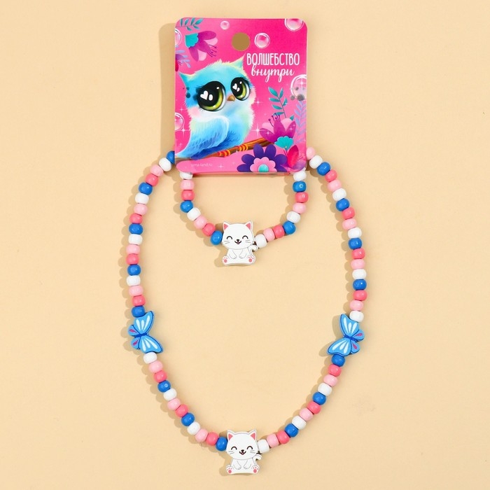 Бижутерия «Волшебство внутри» набор для девочек: браслет и бусы, 7 х 9 см