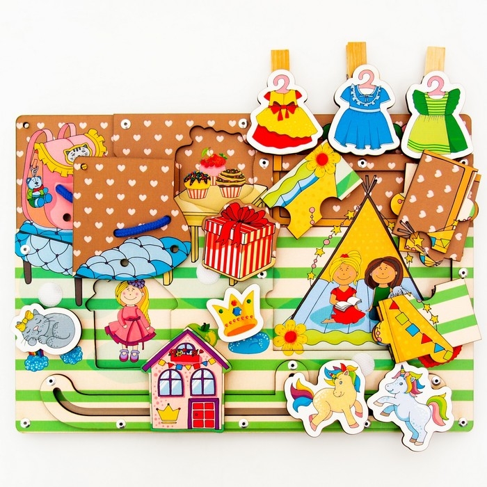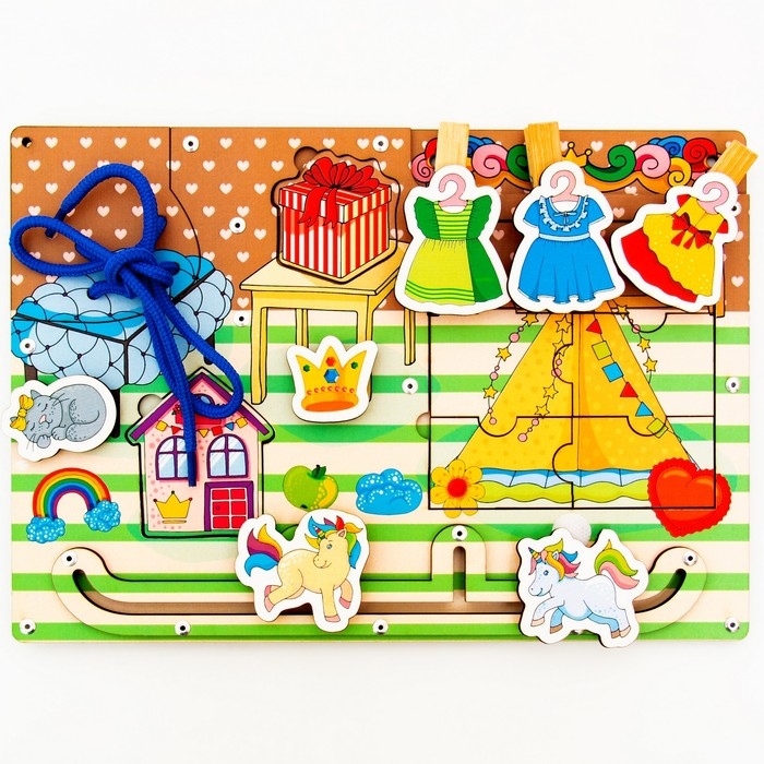 Бизиборд оснащён множеством функциональных элементов: шнуровка, лабиринт, пазл, что способствует развитию мелкой моторики, логического мышления и творческих способностей. Он идеально подходит для детей от 3 лет и старше. Закажите бизиборд сегодня и подарите своему ребёнку радость познания и творчества!