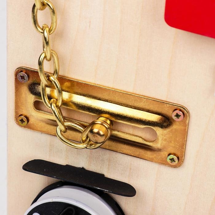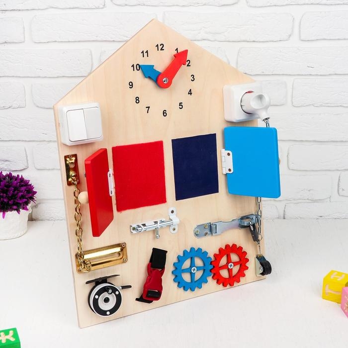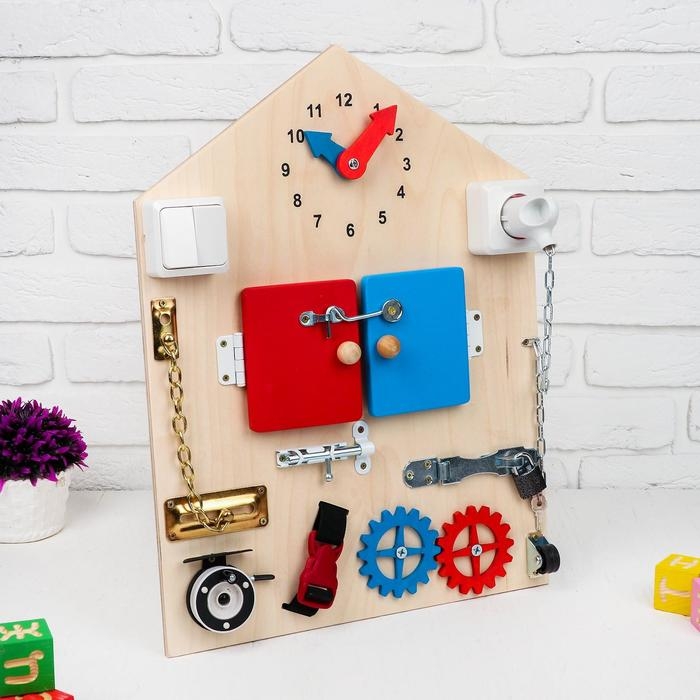 - Развивает мелкую моторику: различные замочки, щеколды, выключатели и розетки тренируют ловкость и координацию движений маленьких пальчиков.