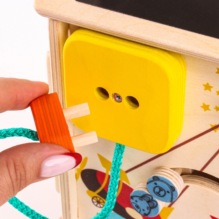 Бизидом оснащён множеством функциональных элементов: замочки, вертушки, шестерёнки, лабиринты и многое другое, что способствует развитию мелкой моторики, логического мышления и творческих способностей. Он идеально подходит для детей от 3 лет и старше. Закажите бизидом сегодня и подарите своему ребёнку радость познания и творчества!