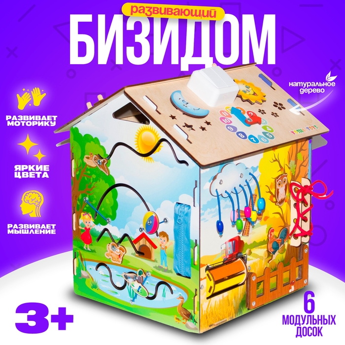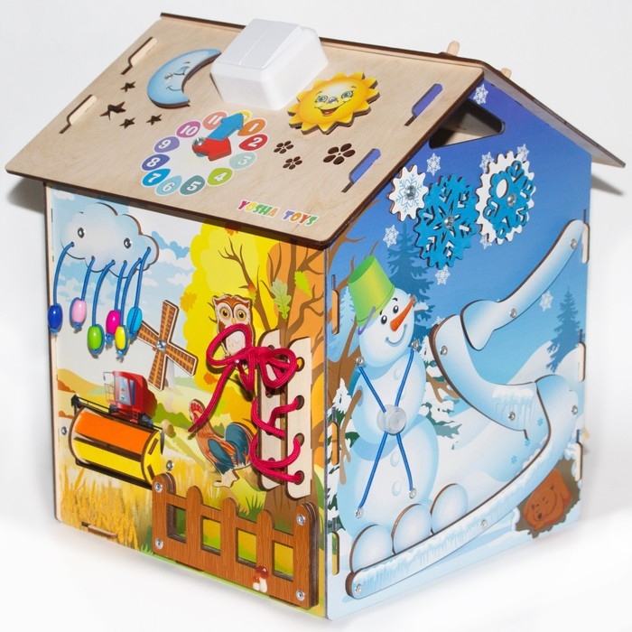 Бизидом «Времена года» со светом — это 6 модульных досок, созданных по методике Монтессори, которые: