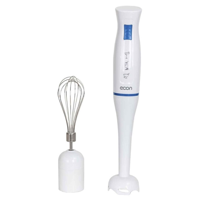Блендер Econ ECO-201HB, погружной, 700 Вт, 1 скорость, 2 насадки, бело-синий