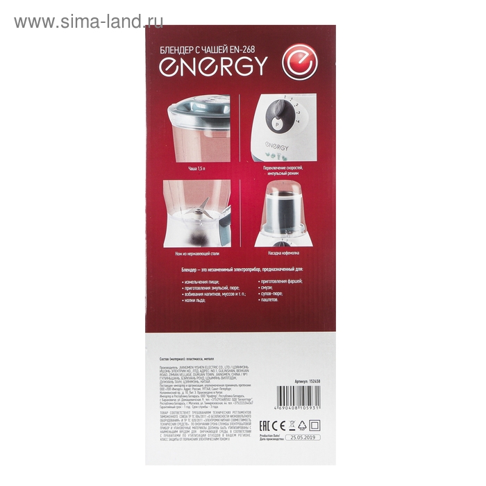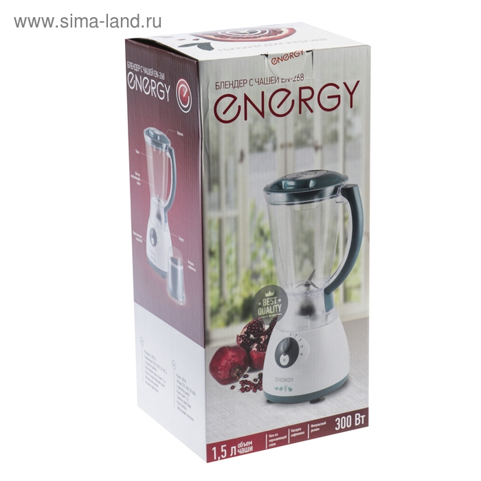 Блендер ENERGY EN-268, стационарный, 300 Вт, 1.5 л, 4 скорости, бело-зелёный