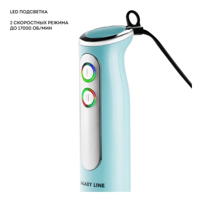 Блендер Galaxy LINE GL 2133, погружной, 1000 Вт, 0.6 л, 2 скорости, голубой
