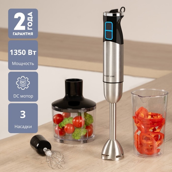Блендер Galaxy LINE GL 2135, погружной, 1350Вт, 0.9/0.6 л, 12 скоростей, режим турбо, серый