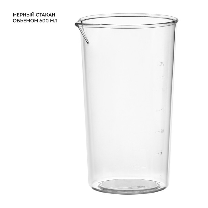 Мерный стакан объемом 860 мл удобен как для измерения объема жидкостей и сыпучих продуктов, так и для взбивания в нем кремов, муссов, соусов, жидкого теста и др.