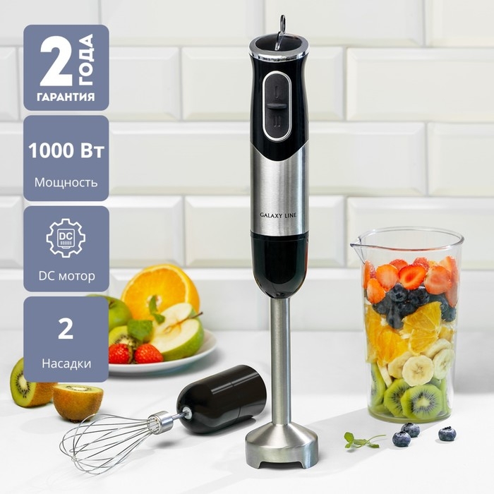 Блендер Galaxy LINE GL 2138, погружной, 1000 Вт, 0.6 л, 2 скорости, чёрно-серый