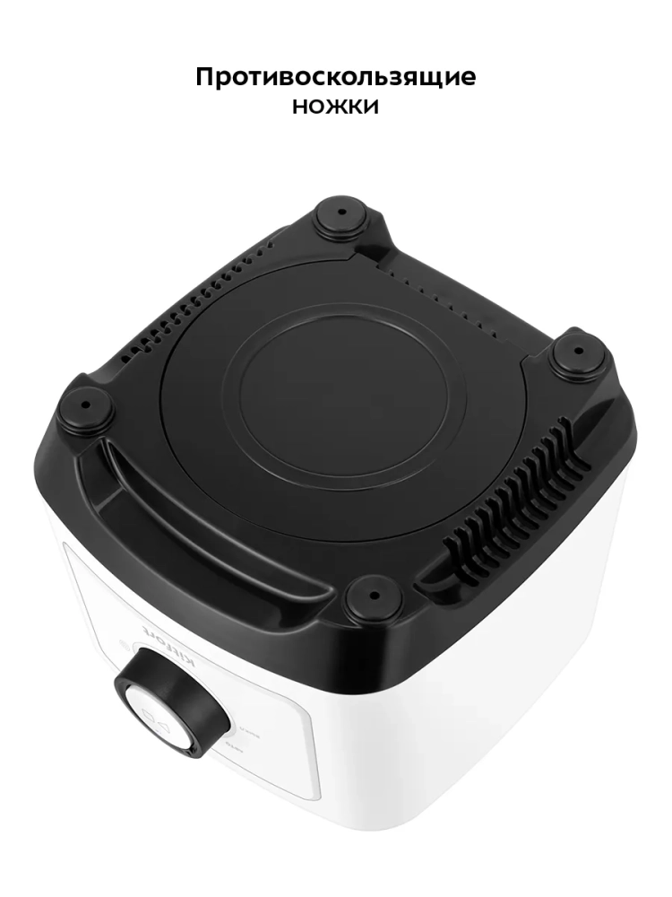 Для обеспечения безопасности блендер может работать только с установленными чашей блендера или чашей измельчителя с крышкой чаши измельчителя. Прорезиненные ножки снижают уровень шума и вибраций при работе. Блендер оснащен 2 скоростями, режимом «АВТО» и импульсным режимом.