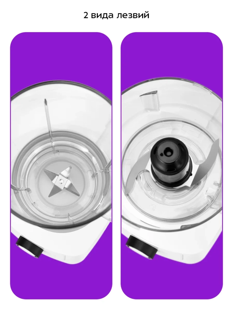 Чаша измельчителя имеет объем 0,5 л и закрывается прозрачной крышкой.