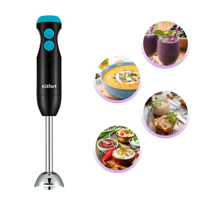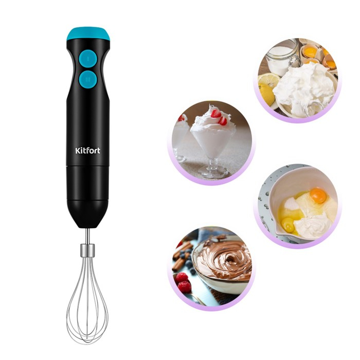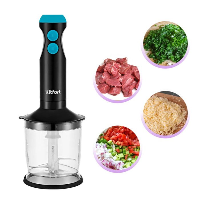 Блендер Kitfort КТ-3041-3, погружной, 350 Вт, 2 скорости, черно-бирюзовый