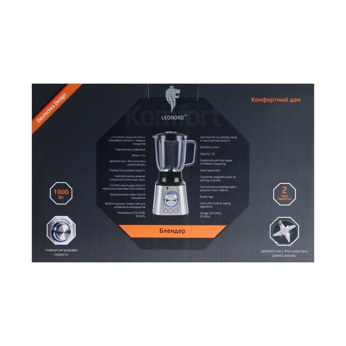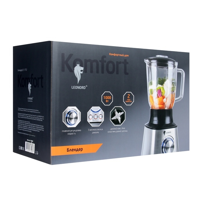 Блендер Leonord LE-1712, стационарный, 1000 Вт, 1.5 л, регулировка скорости, серебристый