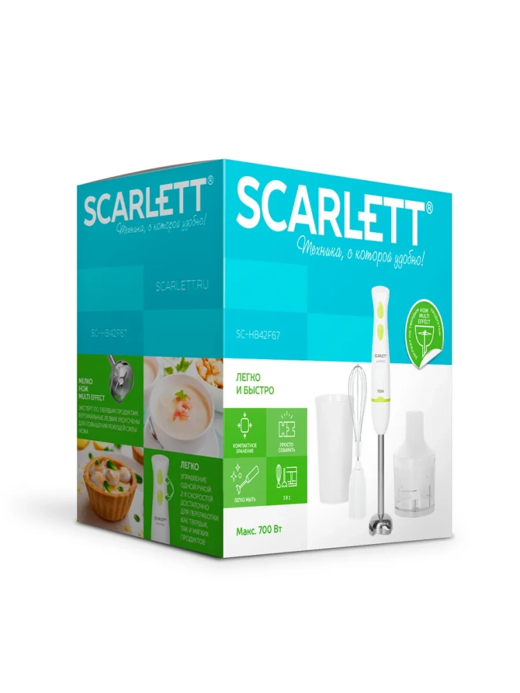 Блендер погружной 3в1 SC-HB42F67 от Scarlett – это универсальный помощник на вашей кухне, который позволит быстро и легко приготовить вкусные и полезные блюда. Модель оснащена двумя скоростями работы, импульсным режимом, что даёт возможность подобрать оптимальный режим для любых продуктов. В комплект входят насадки для измельчения, смешивания и взбивания, а также мерный стакан объемом 0,6 л и чаша измельчителя объемом 0,4 л. Корпус блендера выполнен из прочного пластика, а погружная часть – из нержавеющей стали, что гарантирует его долговечность. Благодаря компактным размерам и многофункциональности, блендер Scarlett SC-HB42F67 станет незаменимым помощником для приготовления супов-пюре, смузи, соусов, коктейлей и многих других блюд.