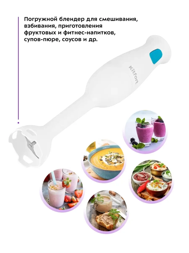 Погружной блендер Kitfort КТ-3039 предназначен для смешивания, взбивания, гомогенизации, приготовления фруктовых и фитнес-напитков, супов-пюре, соусов, муссов, молочных коктейлей, детского питания, а также для замеса жидкого теста. У блендера одна скорость работы и мощный двигатель, рассчитанный на длительный срок эксплуатации. Нож блендера выполнен из нержавеющей стали, что обеспечивает долгий срок службы. Насадка-блендер не снимается с моторного блока. Благодаря компактным размерам погружной блендер KT-3039 не займет много места на вашей кухне. Устройство очень удобно в использовании - достаточно погрузить насадку-блендер в емкость с ингредиентами и нажать на кнопку скорости. Блендер поможет смешать ингредиенты как для маленькой кружки смузи, так и для большой кастрюли крем-супа.