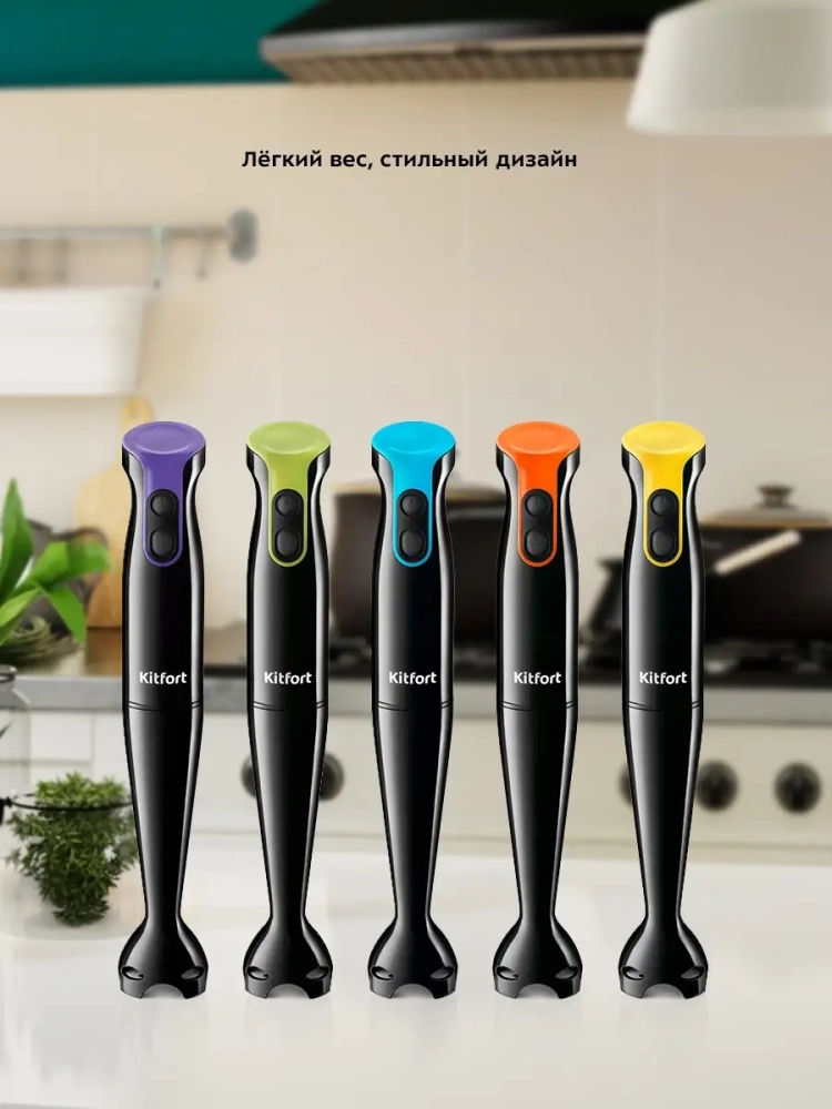 Погружной блендер Kitfort КТ-3040 предназначен для смешивания, взбивания, гомогенизации, приготовления фруктовых и фитнес-напитков, супов-пюре, соусов, муссов, молочных коктейлей, детского питания, а также для замеса жидкого теста. Блендер оснащен кнопкой включения, которая также является кнопкой первой скорости и кнопкой турбо-режима. Нож блендера выполнен из нержавеющей стали, что обеспечивает долгий срок службы. Насадка-блендер легко снимается с моторного блока, поэтому уход за устройством не составит труда. Благодаря компактным размерам погружной блендер KT-3040 не займет много места на вашей кухне. Устройство очень удобно в использовании - достаточно погрузить насадку-блендер в емкость с ингредиентами и нажать на нужную кнопку скорости. Блендер поможет смешать ингредиенты как для маленькой кружки смузи, так и для большой кастрюли крем-супа.