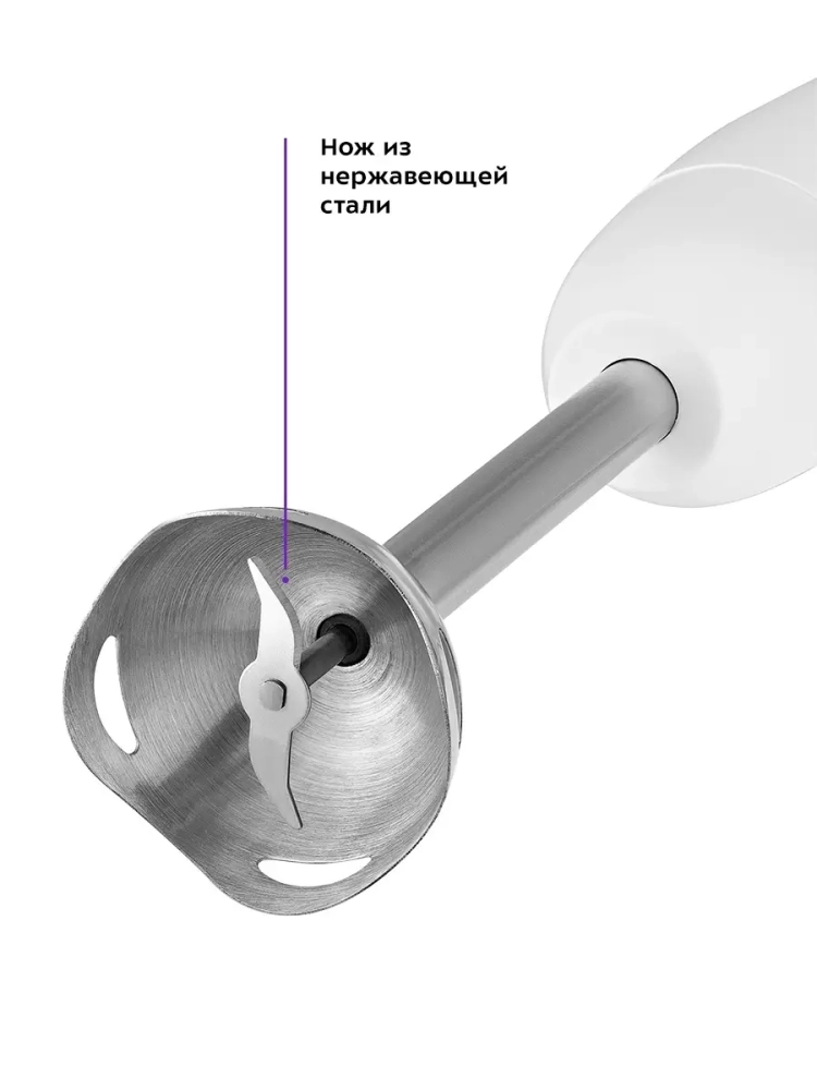 Погружной блендер Kitfort КТ-3051 предназначен для смешивания, взбивания, гомогенизации, приготовления фруктовых и фитнес-напитков, супов-пюре, соусов, муссов, молочных коктейлей, детского питания, а также для замеса жидкого теста. Блендер оснащен двумя скоростями работы и мощным двигателем, рассчитанным на длительный срок эксплуатации. Нож блендера выполнен из нержавеющей стали, что обеспечивает долгий срок службы. Насадка-блендер легко снимается с моторного блока, поэтому уход за устройством не составит труда. Благодаря компактным размерам погружной блендер KT-3051 не займет много места на вашей кухне. Устройство очень удобно в использовании - достаточно погрузить насадку-блендер в емкость с ингредиентами и нажать на нужную кнопку скорости. Блендер поможет смешать ингредиенты как для маленькой кружки смузи, так и для большой кастрюли крем-супа.