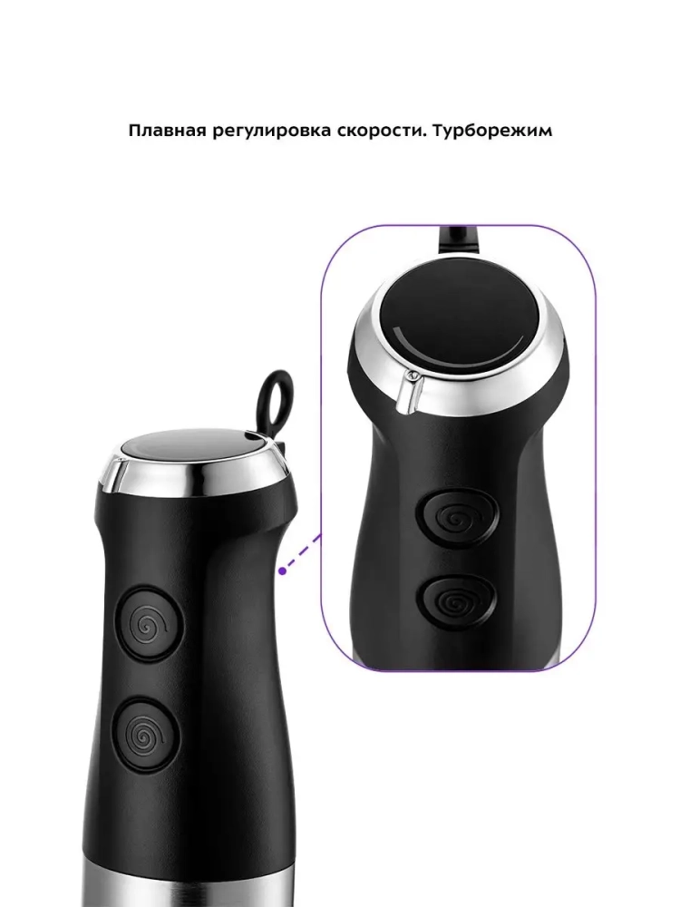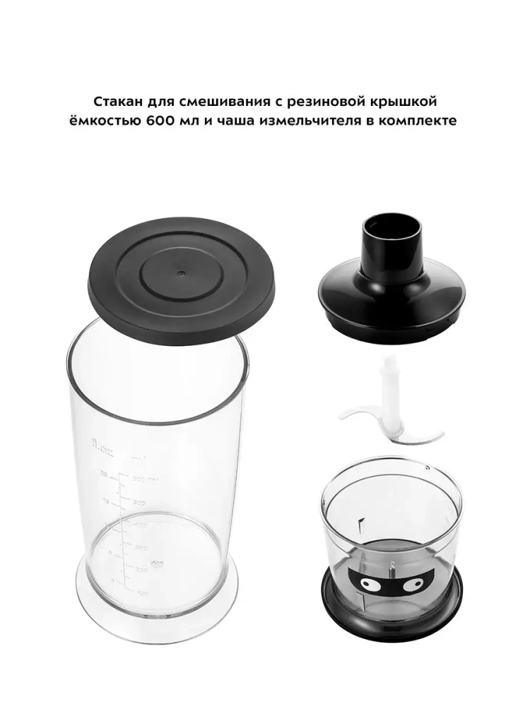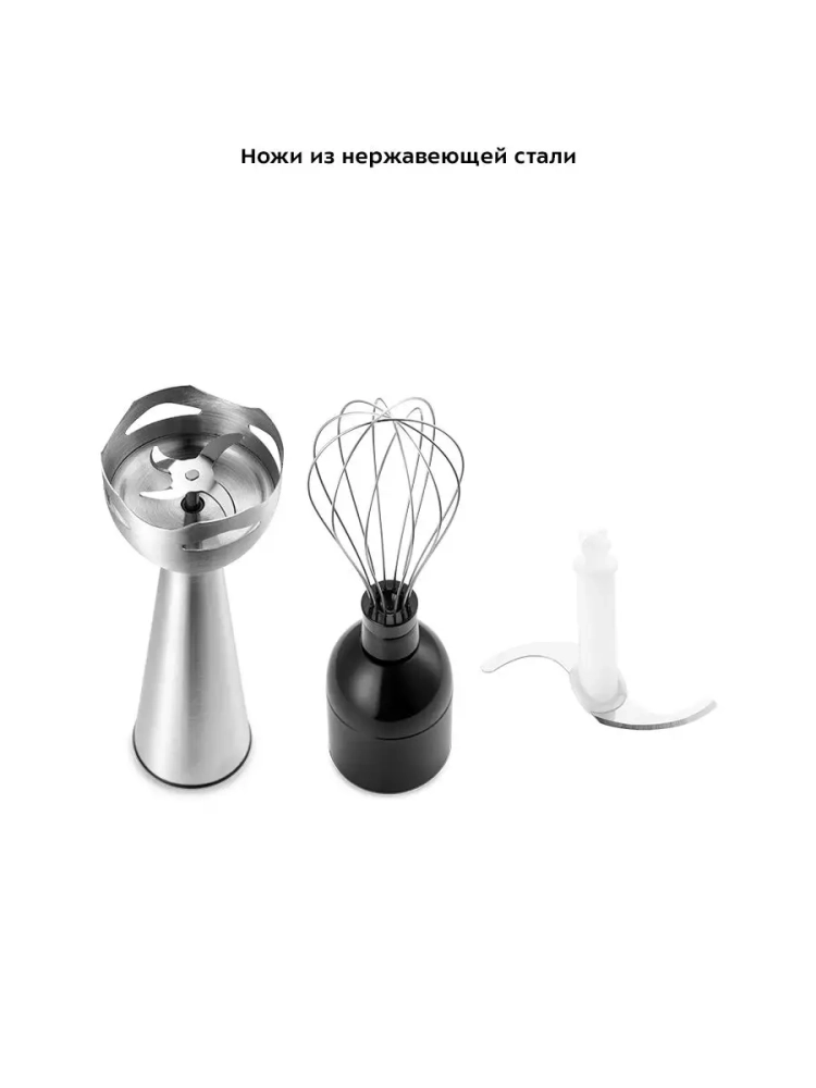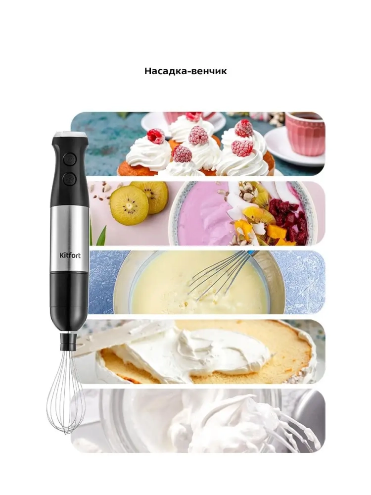 Погружной блендер Kitfort КТ-3503 — универсальное кухонное устройство, с которым вы сможете приготовить множество блюд для себя, своих родных и друзей. Устройство предназначено для смешивания, взбивания, гомогенизации, приготовления фруктовых и фитнес-напитков, супов-пюре, соусов, муссов, молочных коктейлей, детского питания, а также для замеса жидкого теста. Прибор оснащен двумя насадками и чашей измельчителя, благодаря которым устройство может использоваться тремя способами: насадка-блендер смешивает ингредиенты в однородную консистенцию, насадка-венчик незаменима для приготовления жидкого теста и взбивания яичных белков, а в чаше измельчителя можно быстро измельчить мясо, сыр, овощи или ягоды. Смешивать ингредиенты удобно во вместительном и глубоком пластиковом стакане емкостью 600 мл, который идет в комплекте с устройством. Для удобства работы с чашей измельчителя и стаканом блендера в комплекте к ним прилагаются резиновые крышки. После измельчения или смешивания закройте чашу измельчителя и стакан блендера крышкой и уберите на хранение. Чтобы снизить вибрацию и шум при работе блендера, наденьте крышки на дно чаши измельчителя и стакана блендера пред включением, так чаша измельчителя и стакан блендера будут меньше скользить по столу.Насадки легко снимаются с блендера, поэтому уход за устройством не составит труда. Погружной блендер имеет удобное и простое управление. На верхней части устройства находится регулятор скорости — с его помощью вы можете плавно изменять скорость работы от низкой к высокой. Блендер оснащен двумя кнопками — кнопкой включения, запускающей блендер со скоростью, установленной регулятором скорости, и кнопкой турборежима, нажатие на которую включает прибор на максимальной скорости. Нож насадки-блендера, венчик и лезвия ножа чаши измельчителя выполнены из нержавеющей стали, что обеспечивает их долгий срок службы. Благодаря компактным размерам погружной блендер KT-3503 не займет много места на вашей кухне.