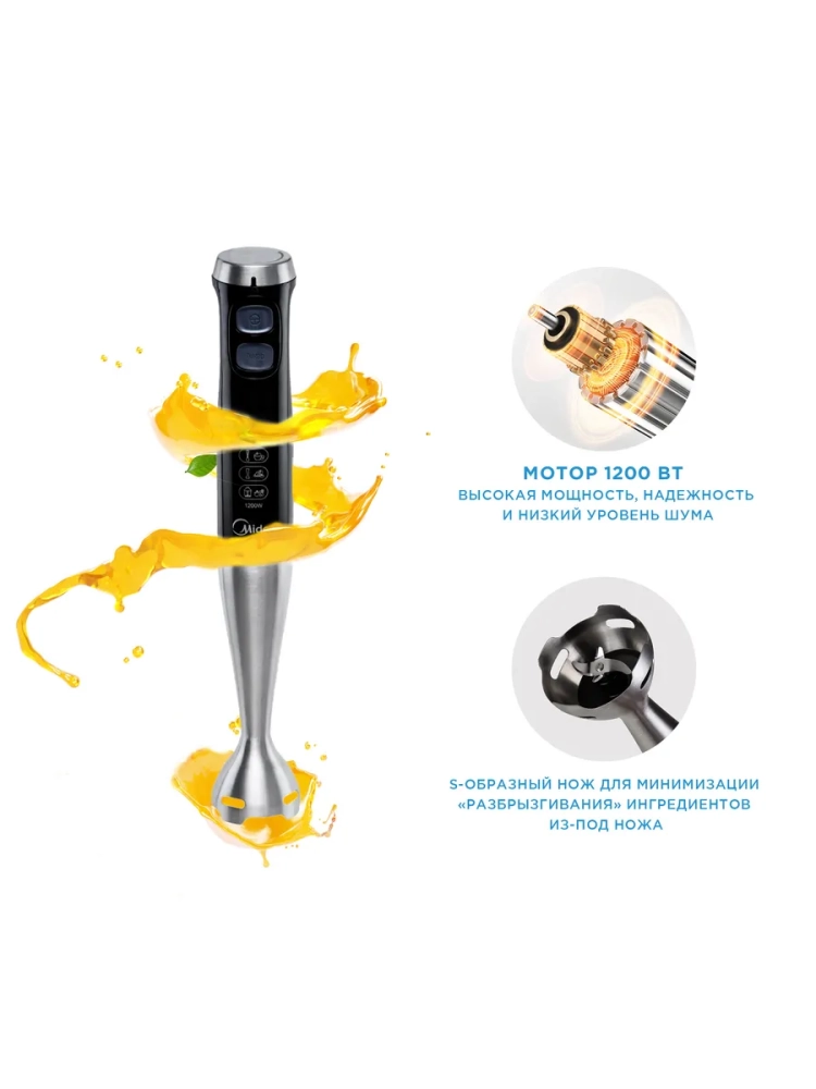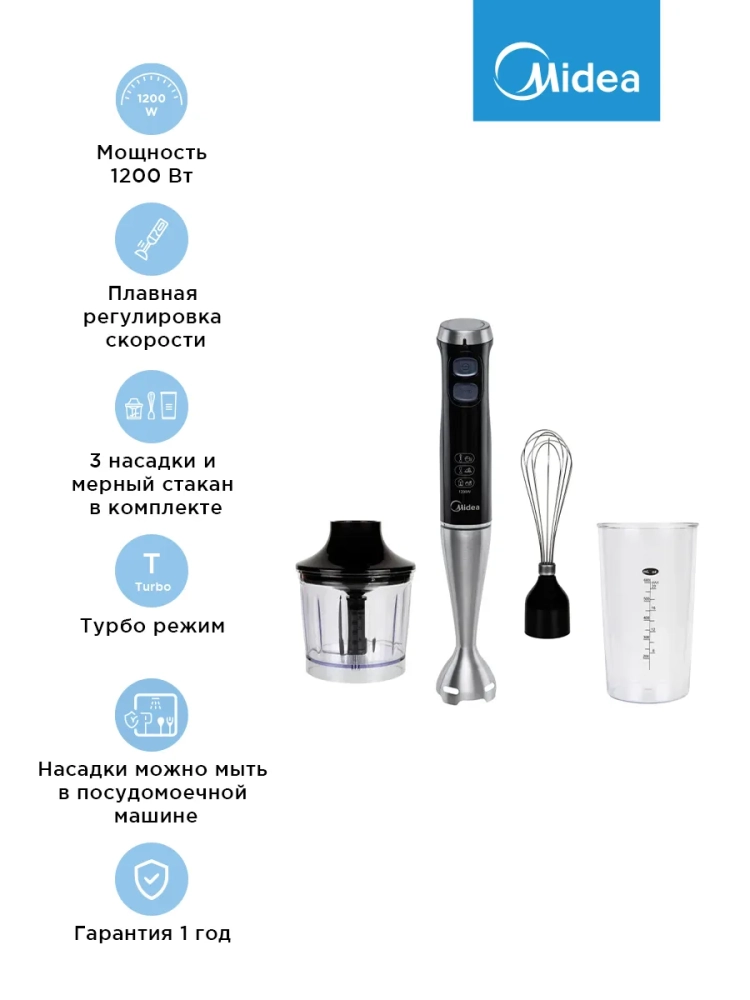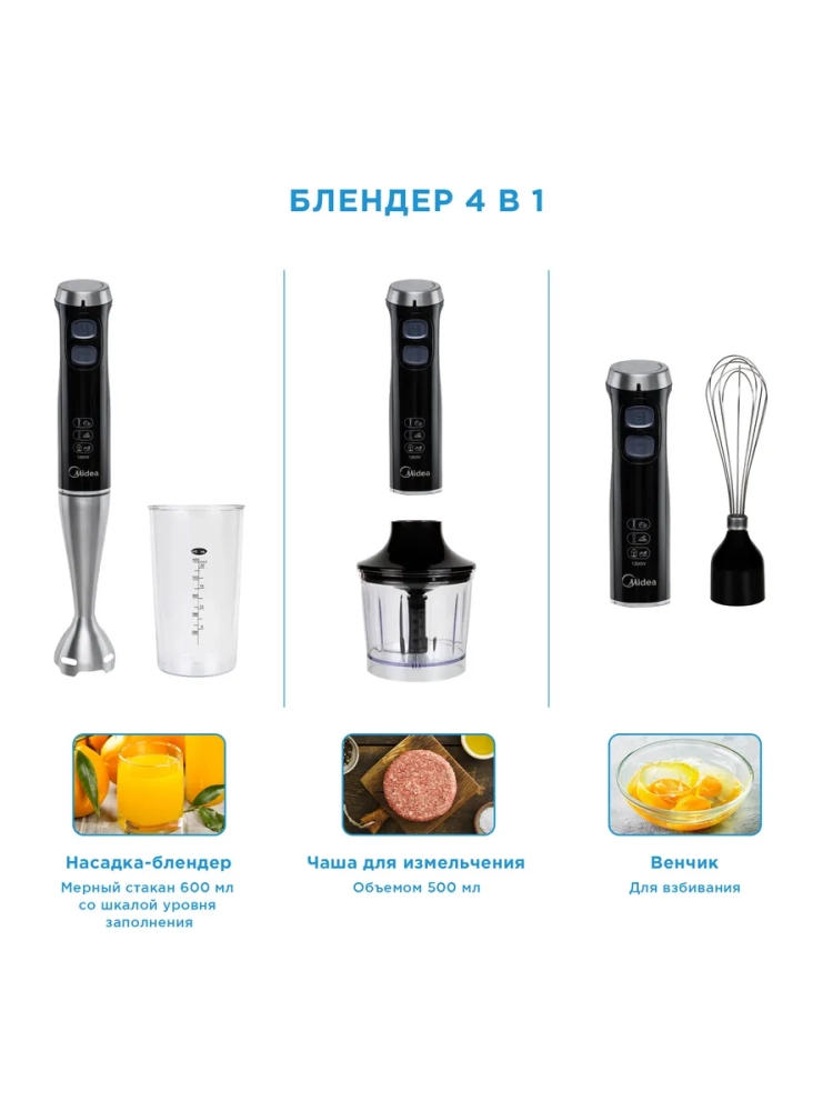 Блендер погружной Midea MC-BL502 - это многофункциональный кухонный помощник, который станет незаменимым атрибутом на вашей кухне.