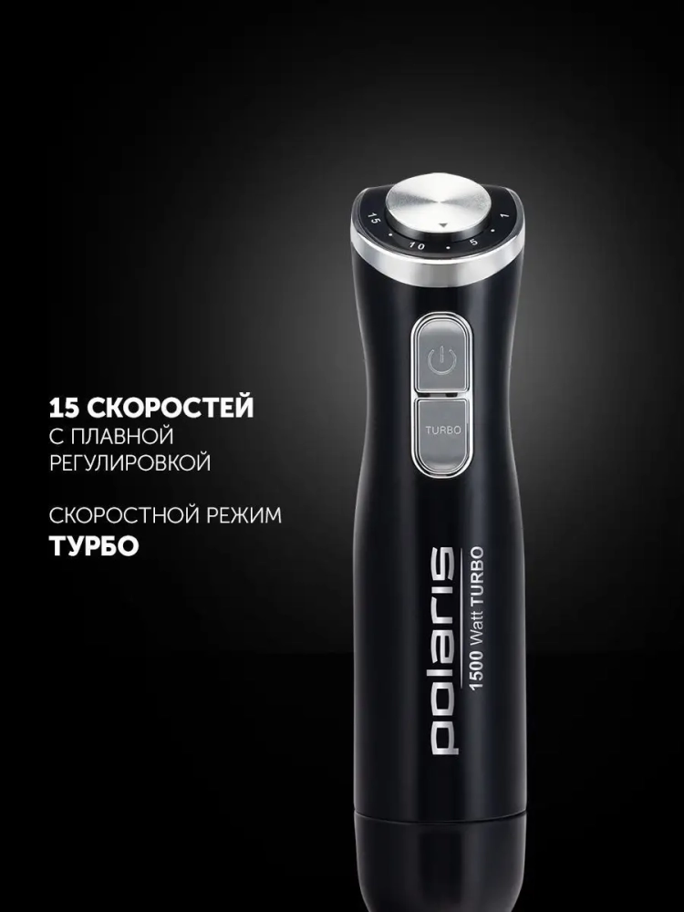 15 скоростных режимов с плавной регулировкой. Кнопка включения и режим ТУРБО.