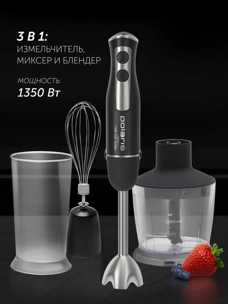 Этот блендер погружной со стаканом и венчиком станет дополнением к вашей бытовой технике Polaris.