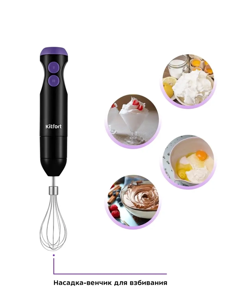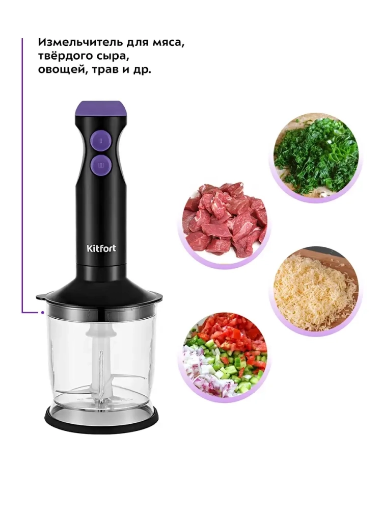 Прибор от Kitfort КТ-3041 может выполнять функции измельчителя, погружного блендера, а также в комплекте идет венчик для взбивания. Моторный блок оснащен кнопками первой и второй скорости. Он легко устанавливается и снимается с остальных частей прибора, поэтому уход за устройством не составит труда. С помощью измельчителя можно быстро измельчить мясо, твердый сыр, овощи, травы, чеснок и ягоды. Чаша измельчителя сделана из пищевого пластика. Благодаря резиновой подкладке под чашу измельчитель меньше скользит по столу, а также дополнительно снижается вибрация и уровень шума при работе. Погружной блендер предназначен для смешивания, взбивания, гомогенизации, приготовления фруктовых и фитнес-напитков, супов-пюре, соусов, муссов, молочных коктейлей, детского питания, а также для замеса жидкого теста. С помощью насадки венчика можно взбить сливки, яичные белки, приготовить бисквит и десерт из готовой смеси. Область применения: измельчение, смешивание, взбивание, замес жидкого теста.