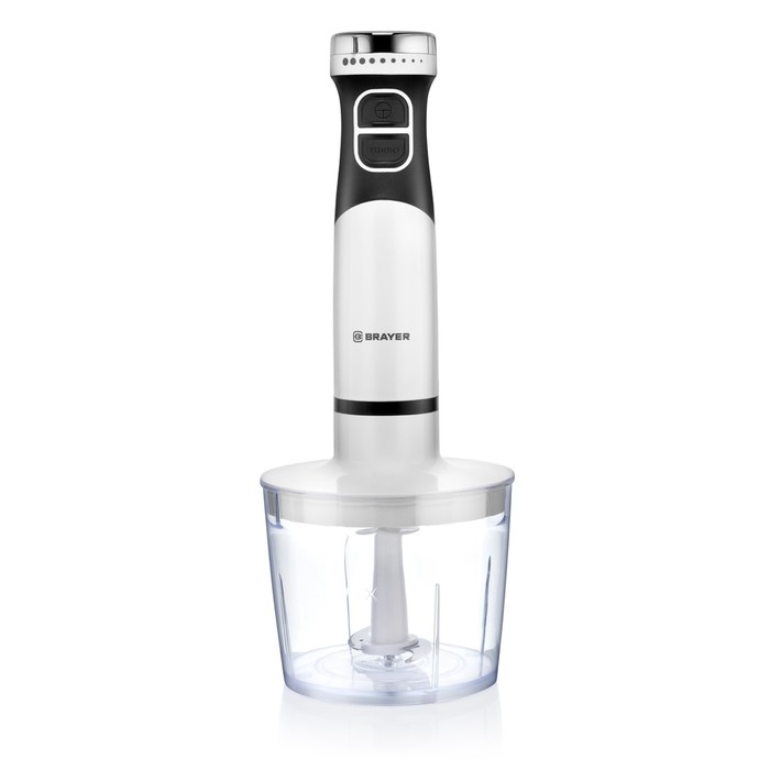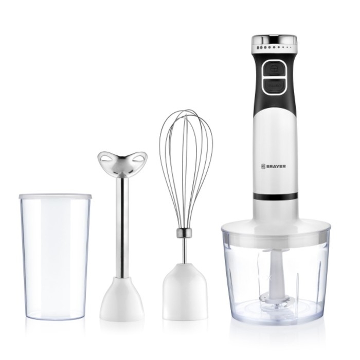 Блендер погружной BRAYER 1242BR, 800 Вт, , нержавеющие лезвия, 2 скорости, 2 насадки, белый