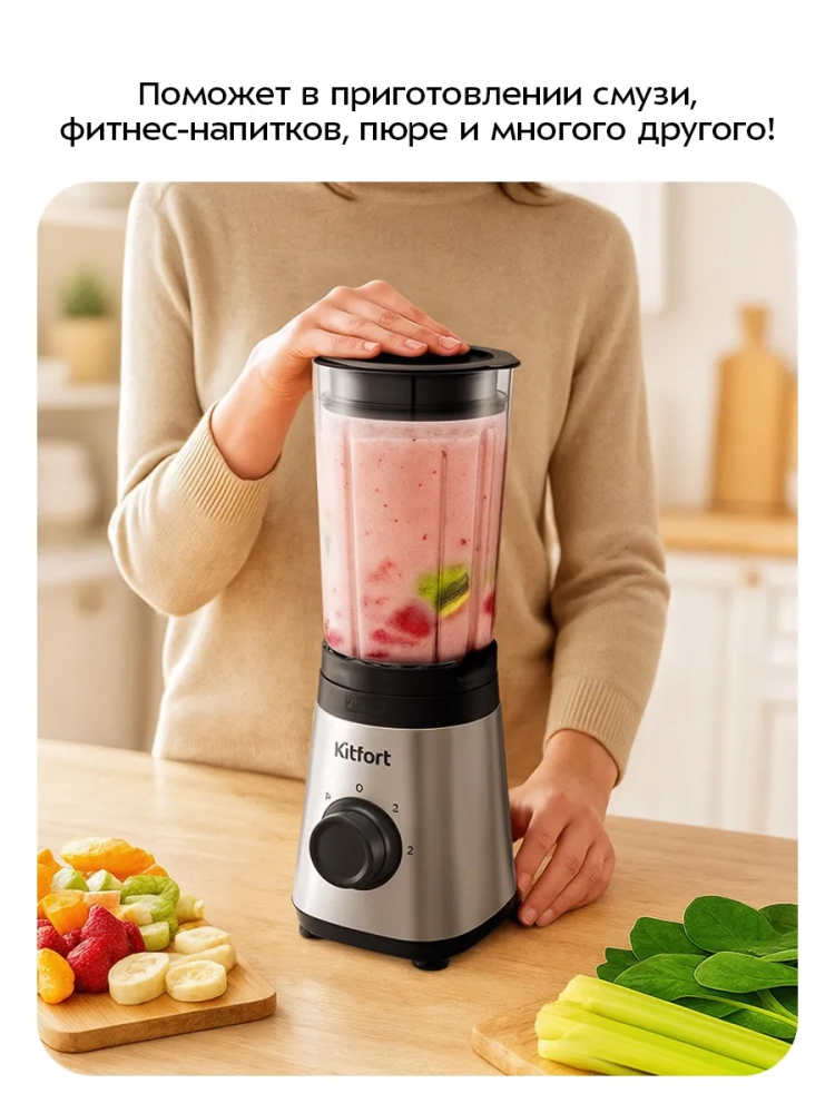 Блендер предназначен для приготовления пюре, взбивания, измельчения, смешивания различных продуктов и колки льда. Прибор идеально подходит для смешивания фруктовых и фитнес-напитков, приготовления смузи, протеиновых смесей, молочных коктейлей, супов-пюре, соусов и детского питания.