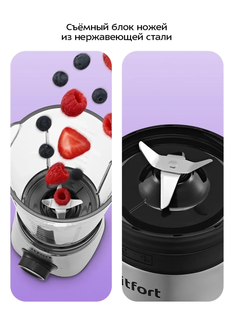 Блендер «2 в 1» Kitfort КТ-3570 выполняет функции не только стационарного блендера, но блендера Shake & Take с чашами разной емкости.
