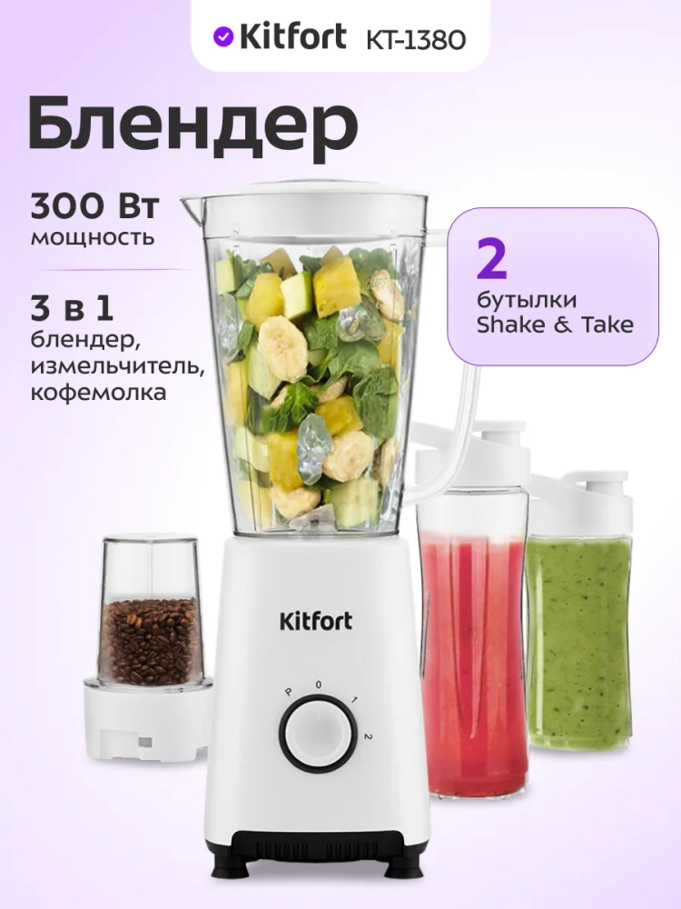 Электрическая кофемолка и измельчитель в комплекте с блендером Kitfort КТ-1380 позволяют измельчать кофе и другие продукты с высокой точностью. Блендеры Kitfort — это бытовая техника, которая сочетает в себе функциональность и стиль, делая процесс приготовления пищи более удобным и приятным.