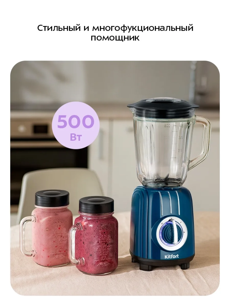 Блендер стационарный КТ-3523 от kitfort — это универсальное настольное устройство, которое сочетает в себе функции блендера и кофемолки. Этот мощный кухонный прибор оснащен стеклянной чашей объемом 1 литр с мерной шкалой, а также кружками для коктейлей емкостью 500 мл. В крышке чаши предусмотрено отверстие с мерным колпачком, который может использоваться как стаканчик для добавления ингредиентов во время работы. Чаша блендера и кружки выполнены из стекла, что обеспечивает долговечность и стильный внешний вид. Мощность устройства составляет 500 Вт, что позволяет ему эффективно справляться с измельчением и смешиванием различных продуктов. Бытовой измельчитель оснащен двумя скоростями и импульсным режимом для максимальной производительности при приготовлении смузи или других напитков. Прорезиненные ножки снижают уровень шума и вибраций во время работы. Этот электрический качественный блендер идеально подходит для приготовления пюре, взбивания кремов, измельчения орехов или льда. Он станет незаменимым помощником на вашей кухне при создании фруктовых напитков, протеиновых смесей или детского питания. Для безопасности использования техника работает только при установленном стакане блендера или кофемолки. Материал ножей из нержавеющей стали гарантирует долгий срок службы прибора. Стационарный blender китфорт — это надежное решение для вашего дома или небольшого кафе благодаря своей функциональности и качеству исполнения.