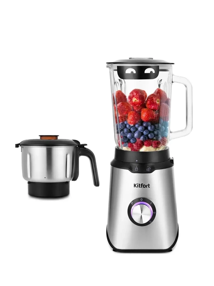 Блендер Kitfort КТ-1344 сочетает в себе функции двух устройств. Это стационарный блендер и измельчитель. Блендер оснащен вместительной чашей с мерной шкалой объемом 1,5 литров. В крышке чаши есть отверстие, закрываемое колпачком, для добавления ингредиентов непосредственно во время работы. Корпус блендера выполнен из сочетания нержавеющей стали и пластика. Для измельчения продуктов в комплекте поставляется измельчитель из нержавеющей стали. Блендер оснащен тремя скоростями работы и импульсным режимом, который можно использовать для колки льда. Нужный режим работы выбирается регулятором на корпусе прибора. Резиновые ножки обеспечивают прочную фиксацию блендера на столе. Прибор предназначен для приготовления пюре и детского питания, смузи, смешивания коктейлей, взбивания, измельчения, дробления, смешивания различных продуктов, приготовления фарша, колки льда и помола кофейных зерен.