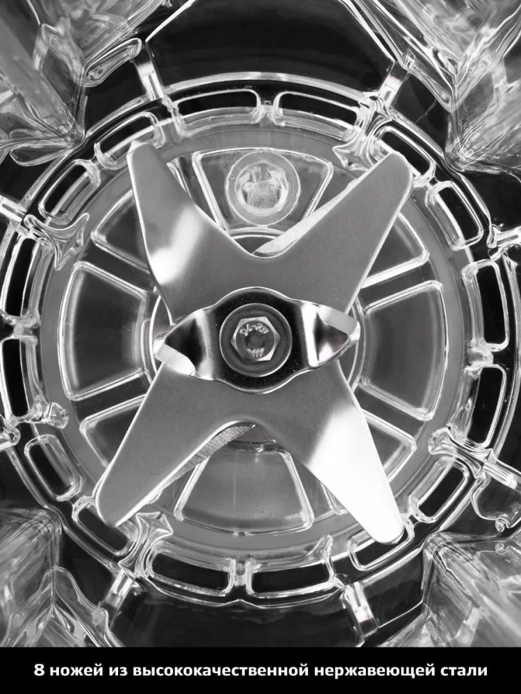 Блендер Китфорт оснащен надежным двигателем мощностью 2200 Вт, рассчитанным на длительный срок эксплуатации. 8 ножей блендера выполнены из нержавеющей стали и обеспечивают долгий срок службы.