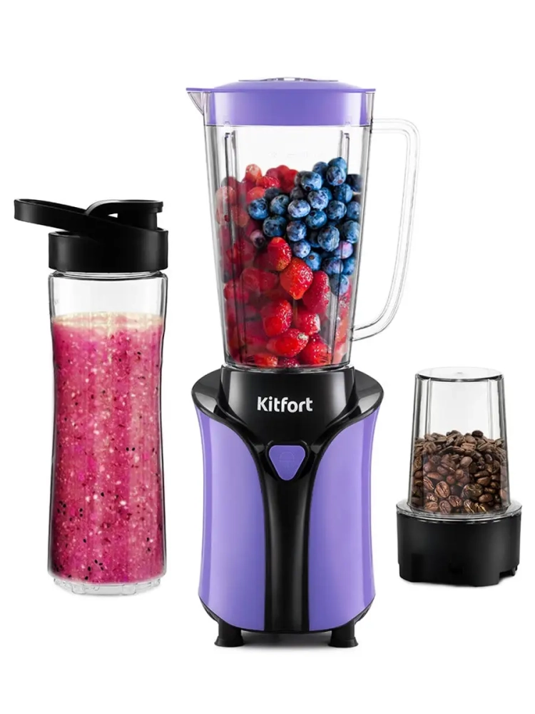 Блендер Kitfort КТ-3034 сочетает в себе функции трех устройств. Это стационарный блендер с функцией Shake& Take (шейк энд тэйк) и портативной бутылкой, а также кофемолка. В комплекте идет вместительная чаша с мерной шкалой емкостью 1 литр, в крышке которой есть отверстие, закрываемое колпачком, для добавления ингредиентов непосредственно во время работы. Колпачок, емкостью в 20 мл, может использоваться как мерный стакан. В комплекте также идет колба для охлаждения жидкости. Наполните колбу водой и положите в морозилку. А когда вам понадобится взять в дорогу бутылку с напитком, то просто поместите колбу в бутылку и закройте бутылку крышкой. Колба для охлаждения будет держать напиток прохладным несколько часов. Для помола кофе в комплекте поставляется ротационная кофемолка. Блендер предназначен для приготовления пюре, взбивания, измельчения, смешивания различных продуктов и колки льда.