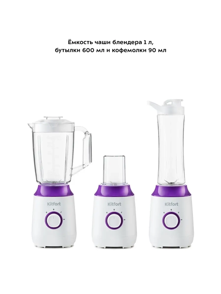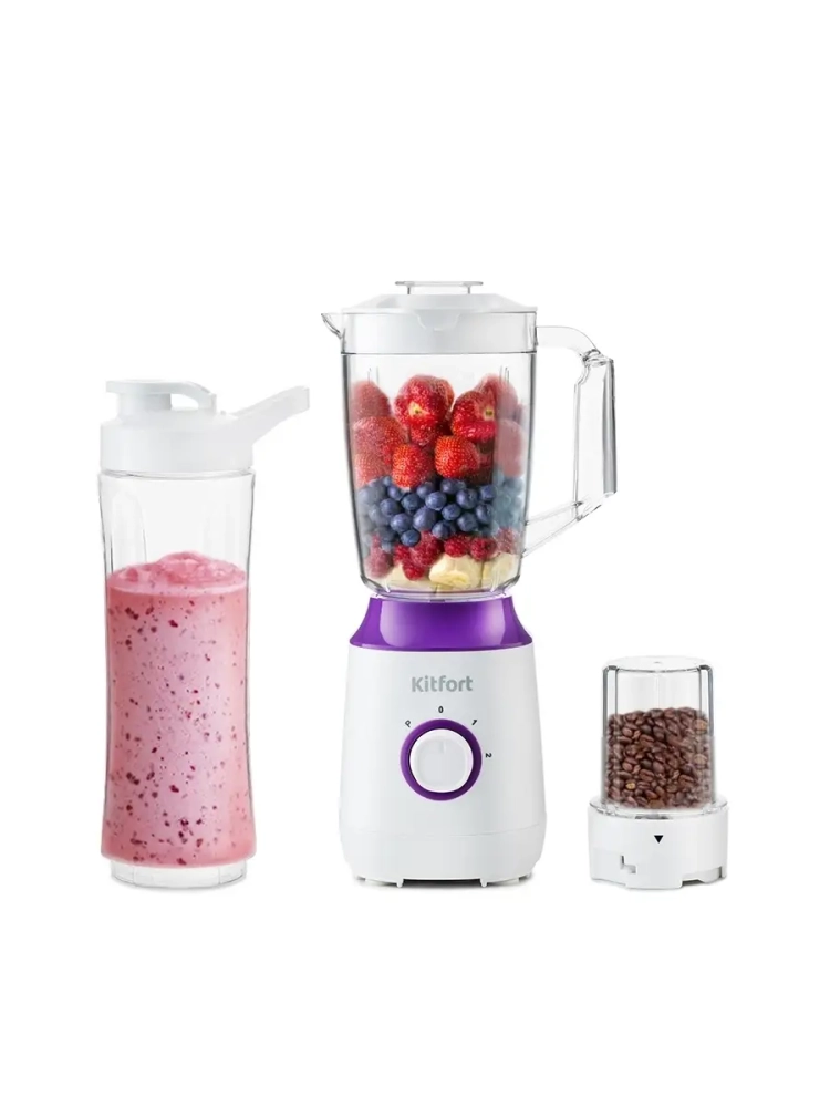 Блендер «3 в 1» Kitfort КТ-3036 сочетает в себе функции трех устройств. Это не только стационарный блендер, который можно использовать и с чашей, и с портативной бутылкой Shake & Take (шэйк энд тэйк), но также и кофемолка.