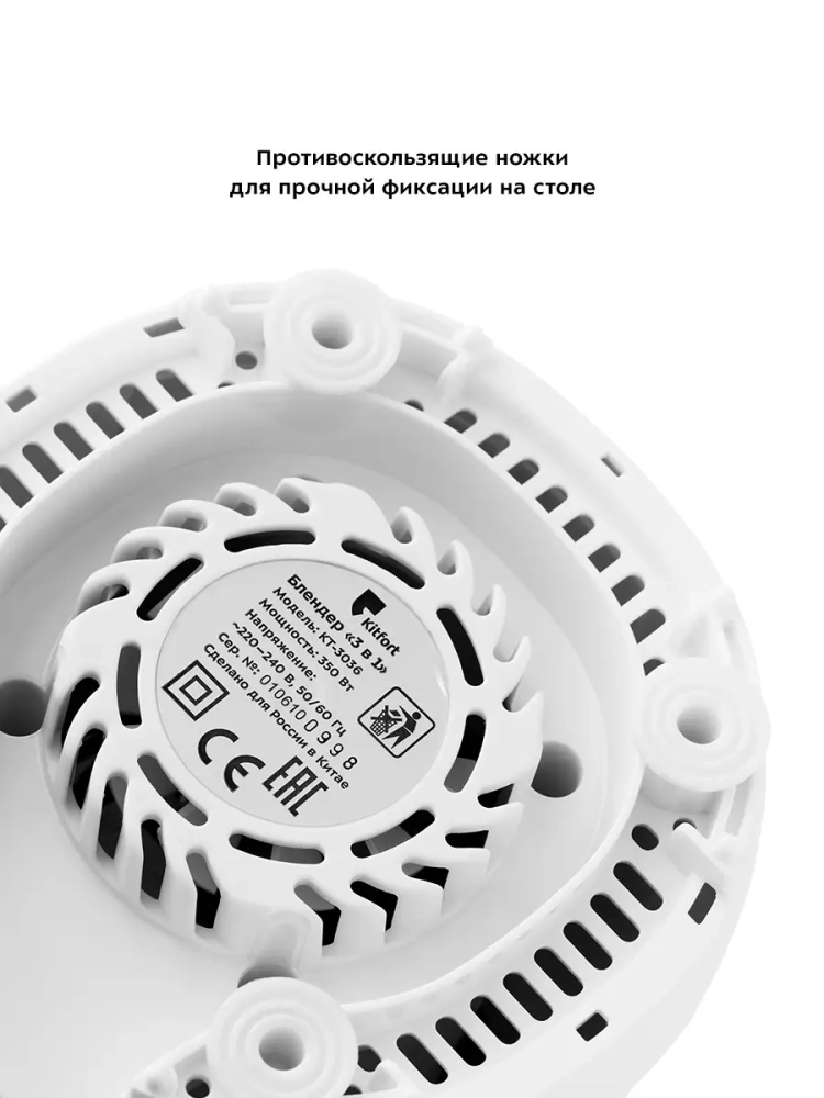 У блендера есть автоматическая защита от перегрузки, которая предназначена для защиты двигателя и предотвращает перегрев блендера. Прорезиненные ножки блендера обеспечивают прочную фиксацию устройства на столе, а также снижают уровень шума и вибраций при работе.