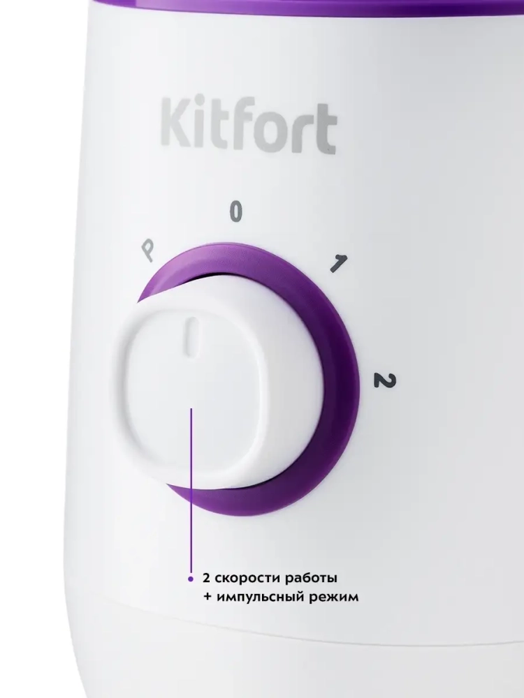 Блендер Китфорт оснащен двумя скоростями работы и импульсным режимом, который можно использовать для трудносмешиваемых ингредиентов или для колки льда. Скорость работы и импульсный режим устанавливаются регулятором скорости, расположенным на моторном блоке.