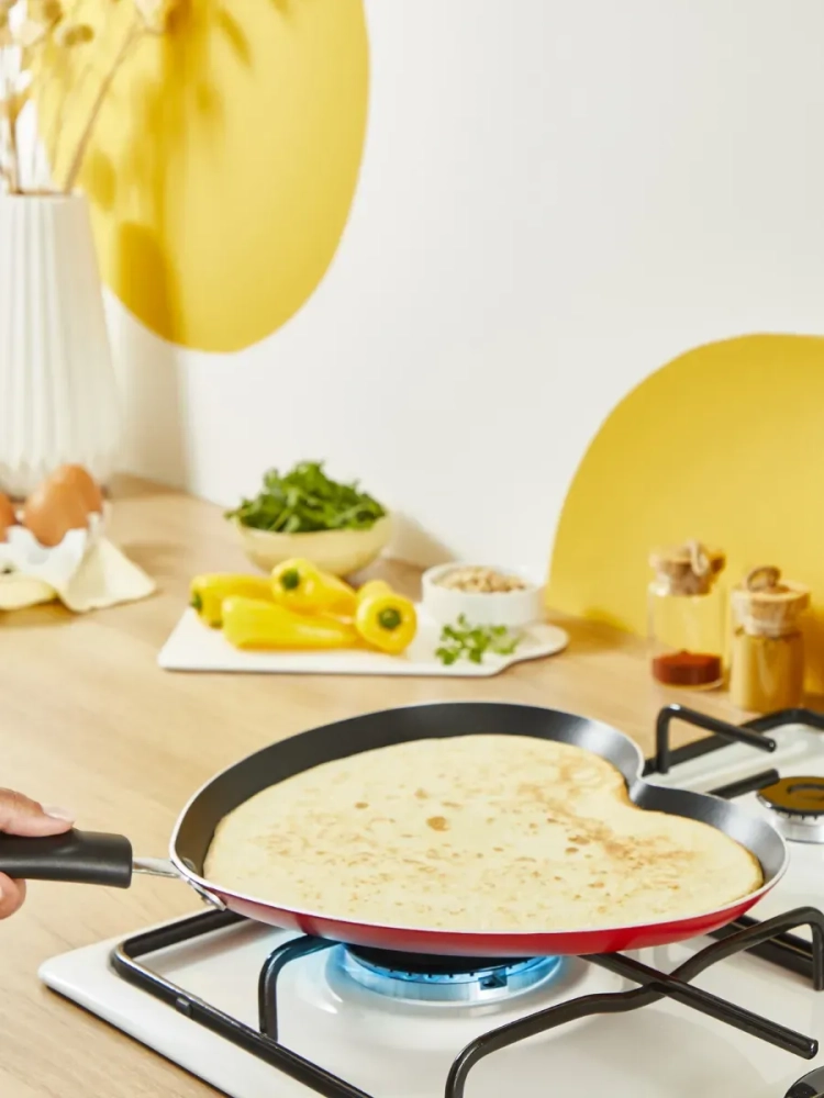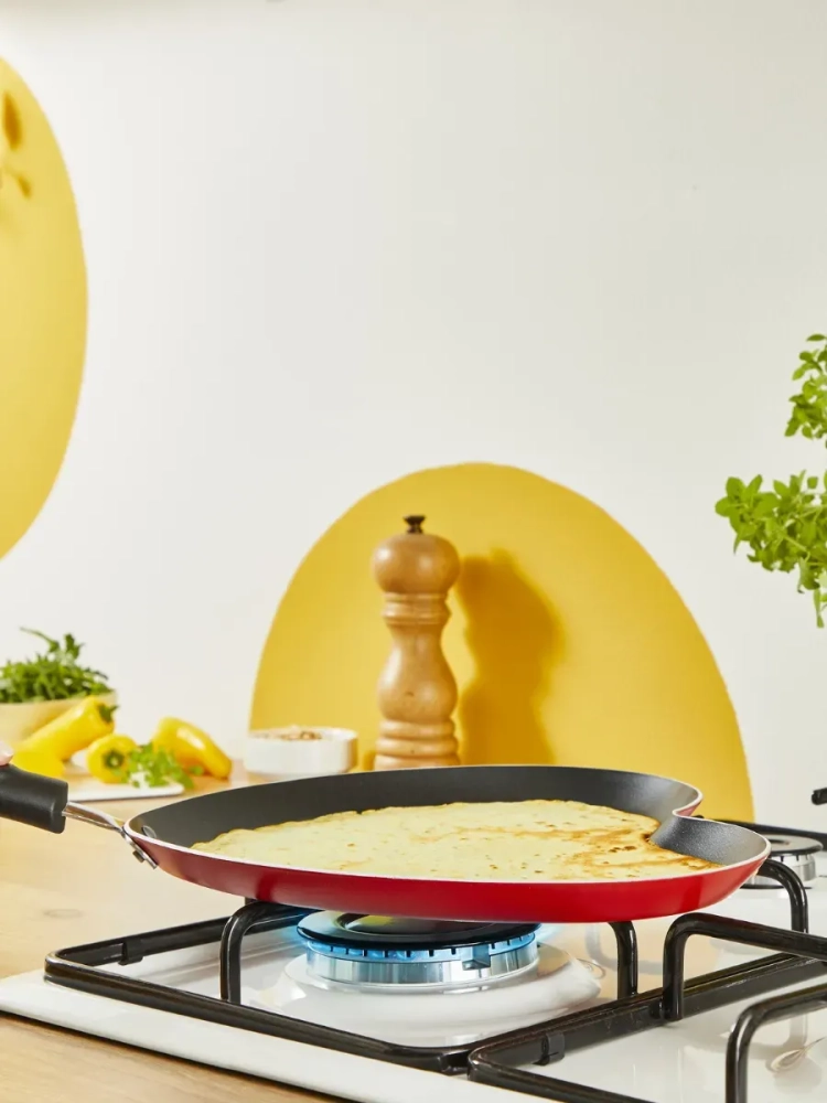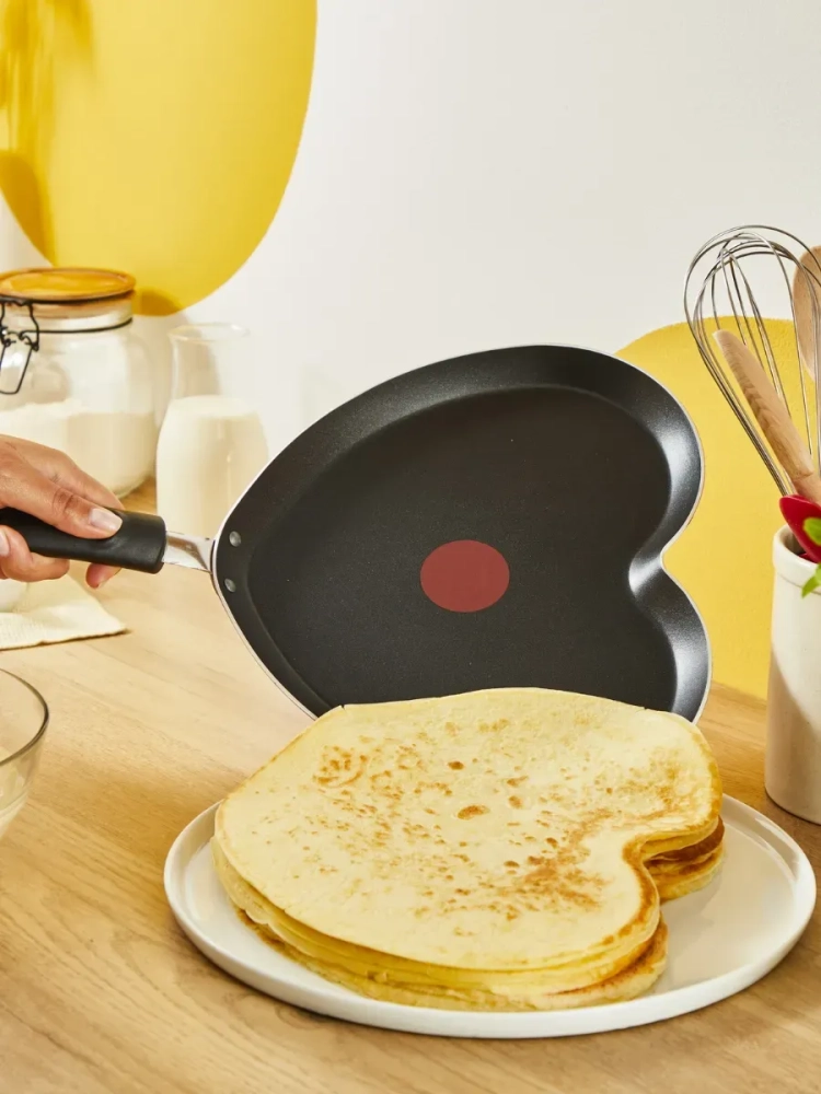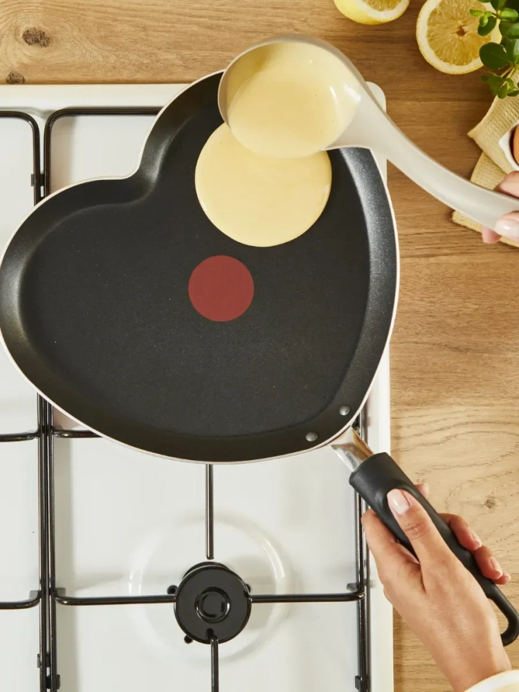 Продуманная конструкция и исключительное антипригарное покрытие обеспечивают идеальное скольжение, необходимое для комфортной подачи блинов. Высококачественное покрытие Tefal с добавлением частиц титана обеспечивает превосходные антипригарные свойства. Обеспечивает равномерное распределение тепла по всей поверхности сковороды, помогая получить идеально пропеченные блины.